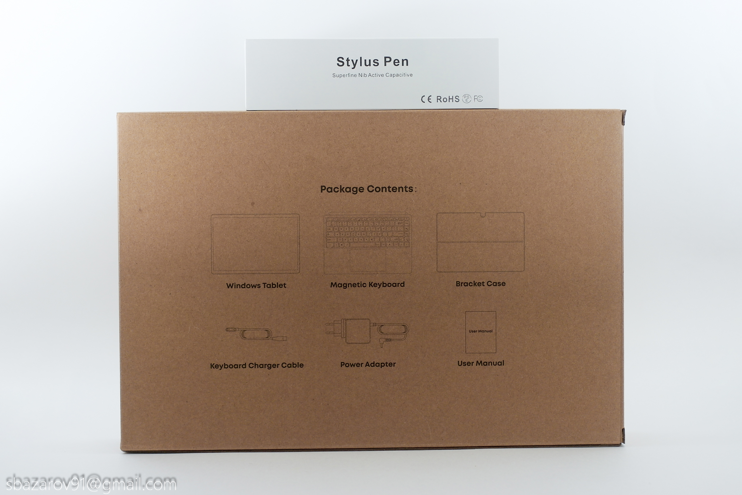 Комплектация включает в себя не только сам планшет с клавиатурой, но и зарядное устройство с кабелем для передачи данных, стилус с заменяемыми насадками, док-станцию для зарядки клавиатуры и адаптер для подключения проводных наушников через Type-C. О стилусе я рассказывал в обзоре ноутбука-трансформера Ninkear N14.