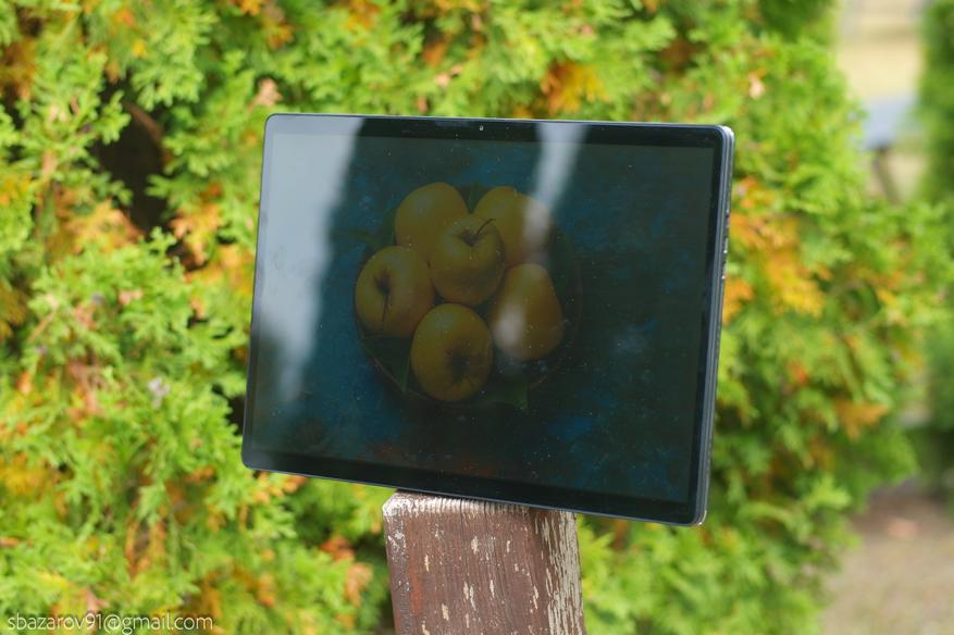 Для видеоконференций предусмотрена фронтальная камера с разрешением 5 Мп с автофокусом, расположенная в центре верхней грани, а также дополнительная камера на 2 Мп на обратной стороне. При достаточном количестве света основная камера позволяет получать вполне неплохие снимки.