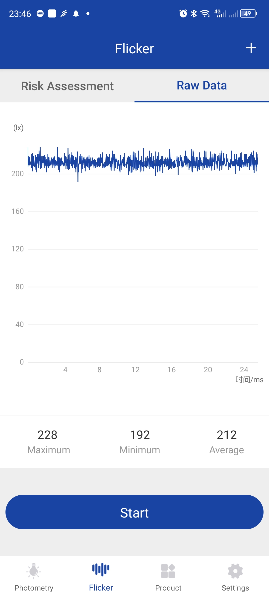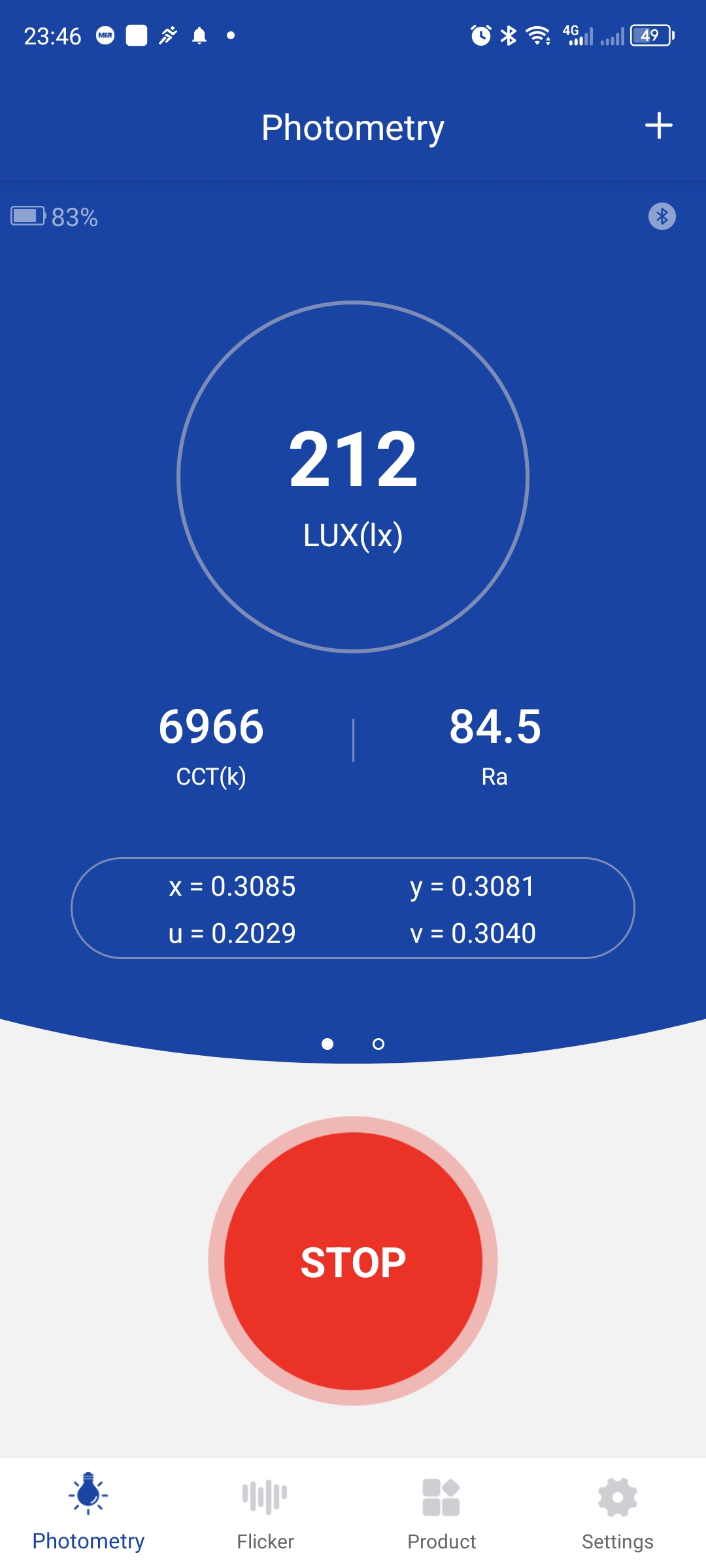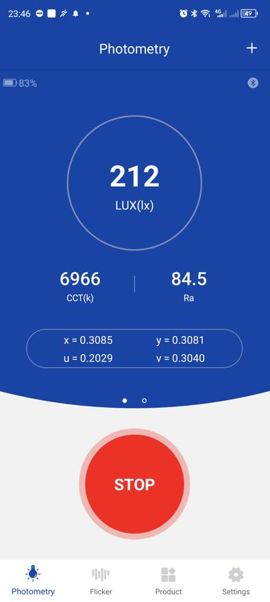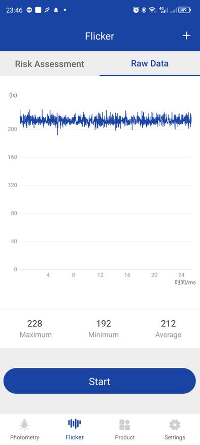 Заявленная пиковая яркость составляет 250 cd/m², но измерения с помощью Opple Light Meter показывают чуть меньше — 212 люкс. Индекс цветопередачи 84.5, а цветовая температура ~7000 Кельвинов. Идеальным вариантом считается температура 6500К, здесь же экран слегка отдает холодными оттенками.