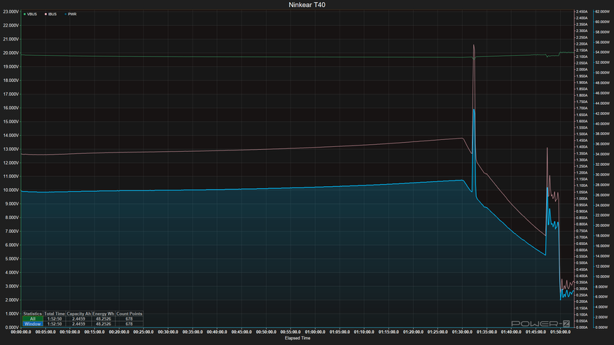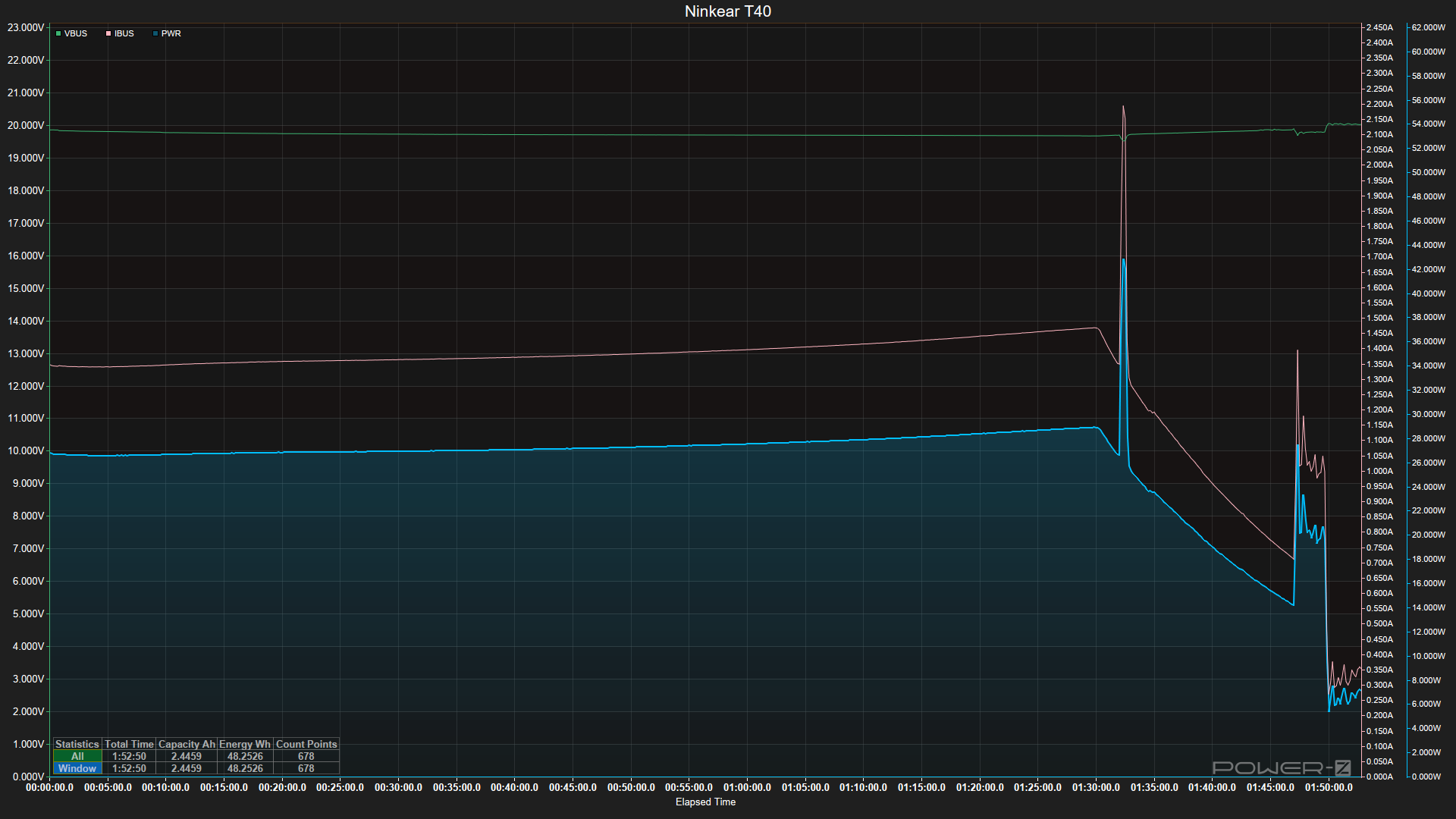 Время зарядки Ninkear T40 составляет 1 час 52 минуты, что является хорошим показателем для данного класса устройств. Для зарядки можно использовать любое зарядное устройство с поддержкой Power Delivery, что делает T40 универсальным в плане дозарядки.