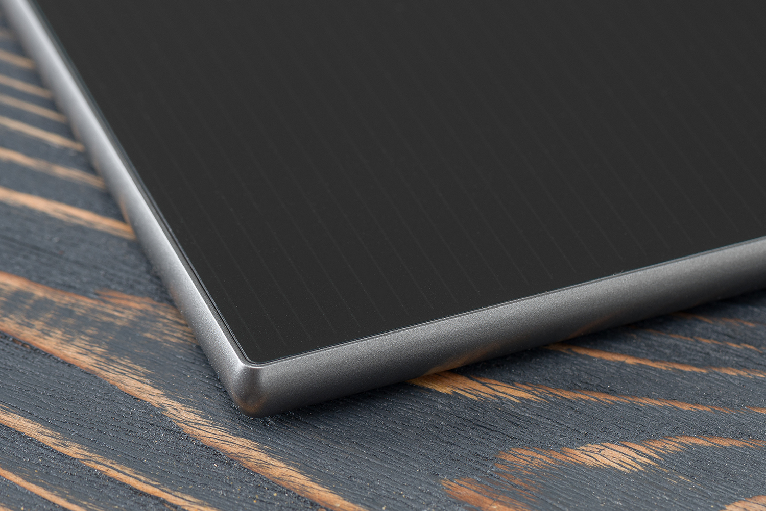 PocketBook InkPad Eo — это такой тонюсенький черно-серый параллелепипед, практически идеально собранный и достаточно тяжелый, что, впрочем, идет ему на пользу. Почему на пользу — потому что сочетание такого дизайна, материалов корпуса, толщины и веса дают ощущение серьезной вещи. Чувствуется, что в руках не дешевка.