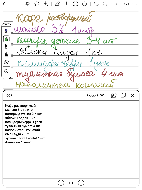 С одним из последних апдейтов добавилась функция перевода рукописного текста в печатный. Работает вполне сносно — нет проблем ни с точностью, ни с количеством поддерживаемых языков (их более четырех десятков, русский есть). Плюс при желании можно и какое-нибудь другое приложение для этого подобрать — из Google Play.