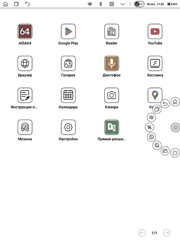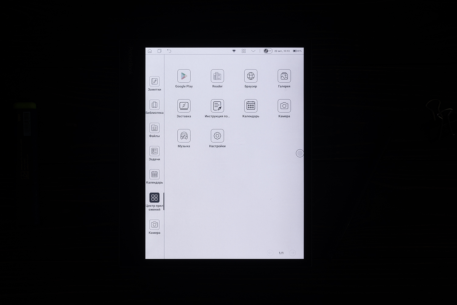 Коротко опишу интерфейс устройства. Рабочий стол в классическом смартфонно-планшетом понимании здесь отсутствует. Слева находится боковая панель с избранными приложениями и разделами (разработчики их избрали сами, но список можно менять), а основную часть экрана занимает выбранный раздел или приложение. Какие-то открываются именно на части дисплея, какие-то — в полноэкранном режиме. К числу последних относятся, например, программы для чтения, коих аж две — PocketBook Reader и xReader.