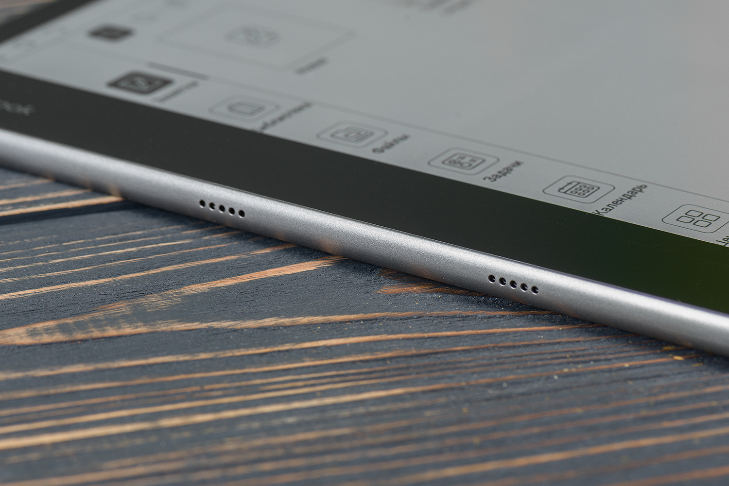 На левой грани — два динамика. То есть PocketBook InkPad Eo может играть в стереорежиме.