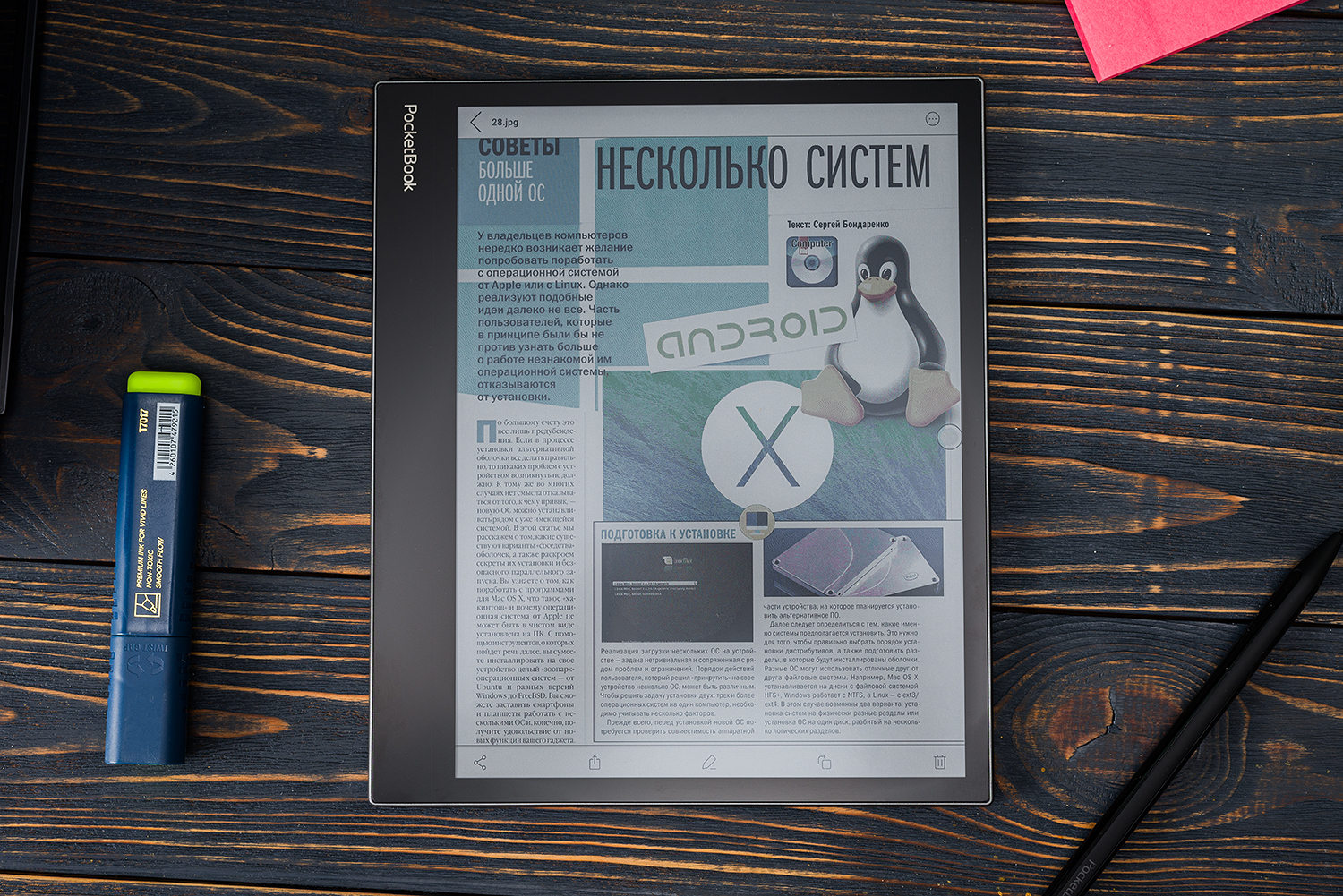 Купил бы я PocketBook InkPad Eo себе? К сожалению или к счастью, рисовать или делать заметки на постоянной основе мне не нужно, а для чтения отлично подойдет и обычный 6-дюймовый ридер с черно-белым дисплеем. Но я прекрасно понимаю тех, то InkPad Eo все же приобретет. Этот девайс — самое оно для товарищей, которые жить не могут без ручки, карандаша, фломастера или маркера. Их, таких товарищей, на самом деле полным-полно. Моя жена именно такая — все время что-то пишет. И ее InkPad Eo очень заинтересовал.