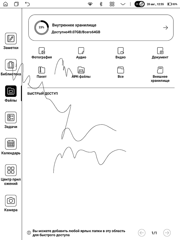В общем, к «блокнотной» функциональности устройства у меня тоже никаких вопросов нет — видно, что постарались и сделали на совесть. Оно, впрочем, и логично: если уж «пилишь» гаджет категории «гибрид ридера и электронного блокнота», то экрану и перу — максимум внимания. Разработчики, к счастью, пошли именно по этому пути.