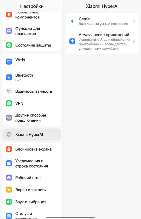 Приятный бонус — встроенный AI-помощник Xiaomi HyperAI с интеграцией Gemini. Можно использовать голосовые команды, AI-улучшение приложений, умные подсказки.