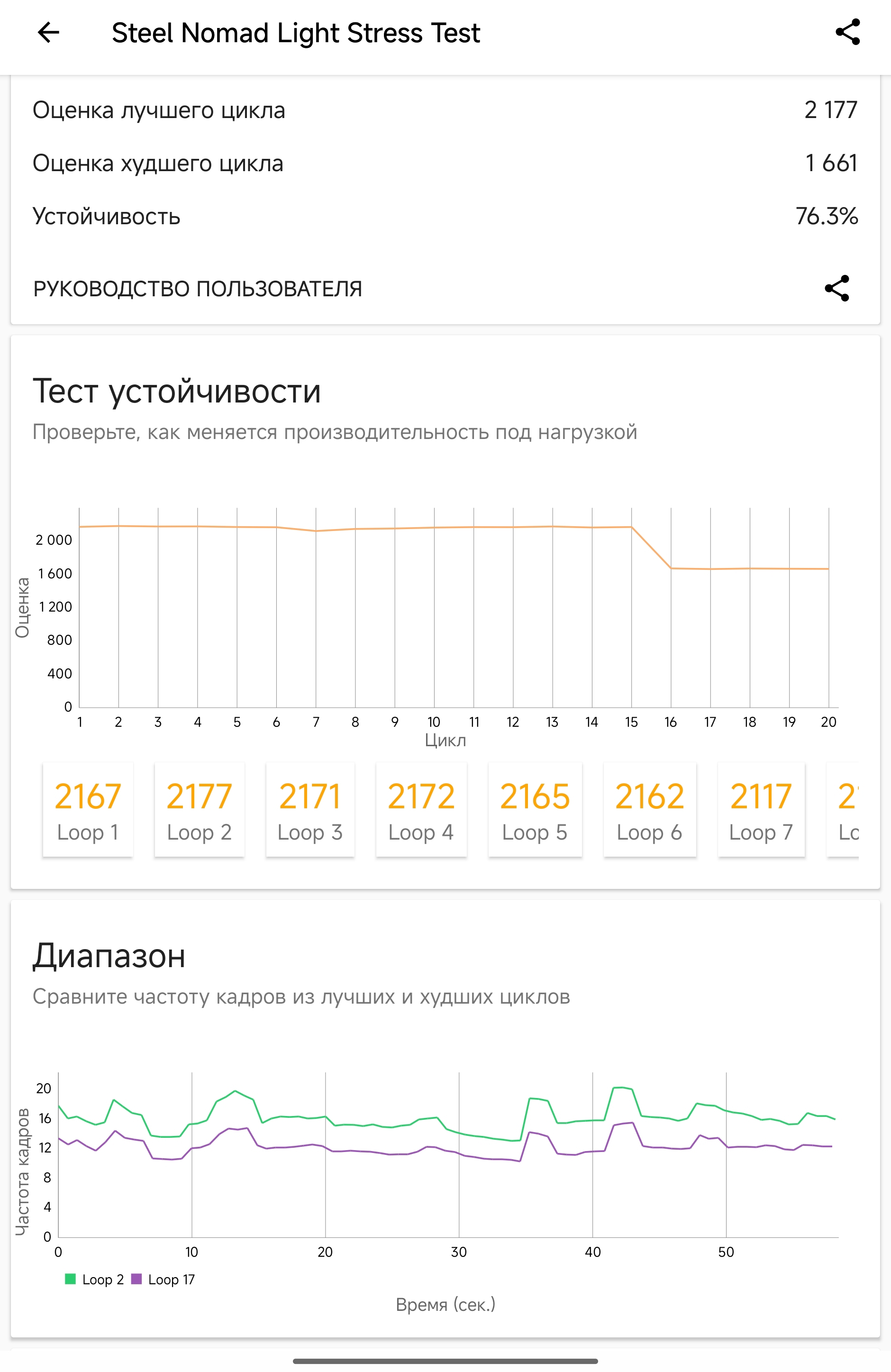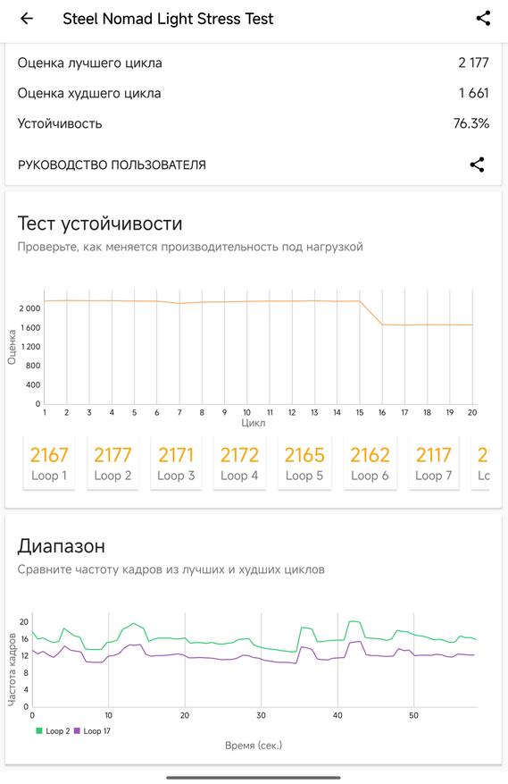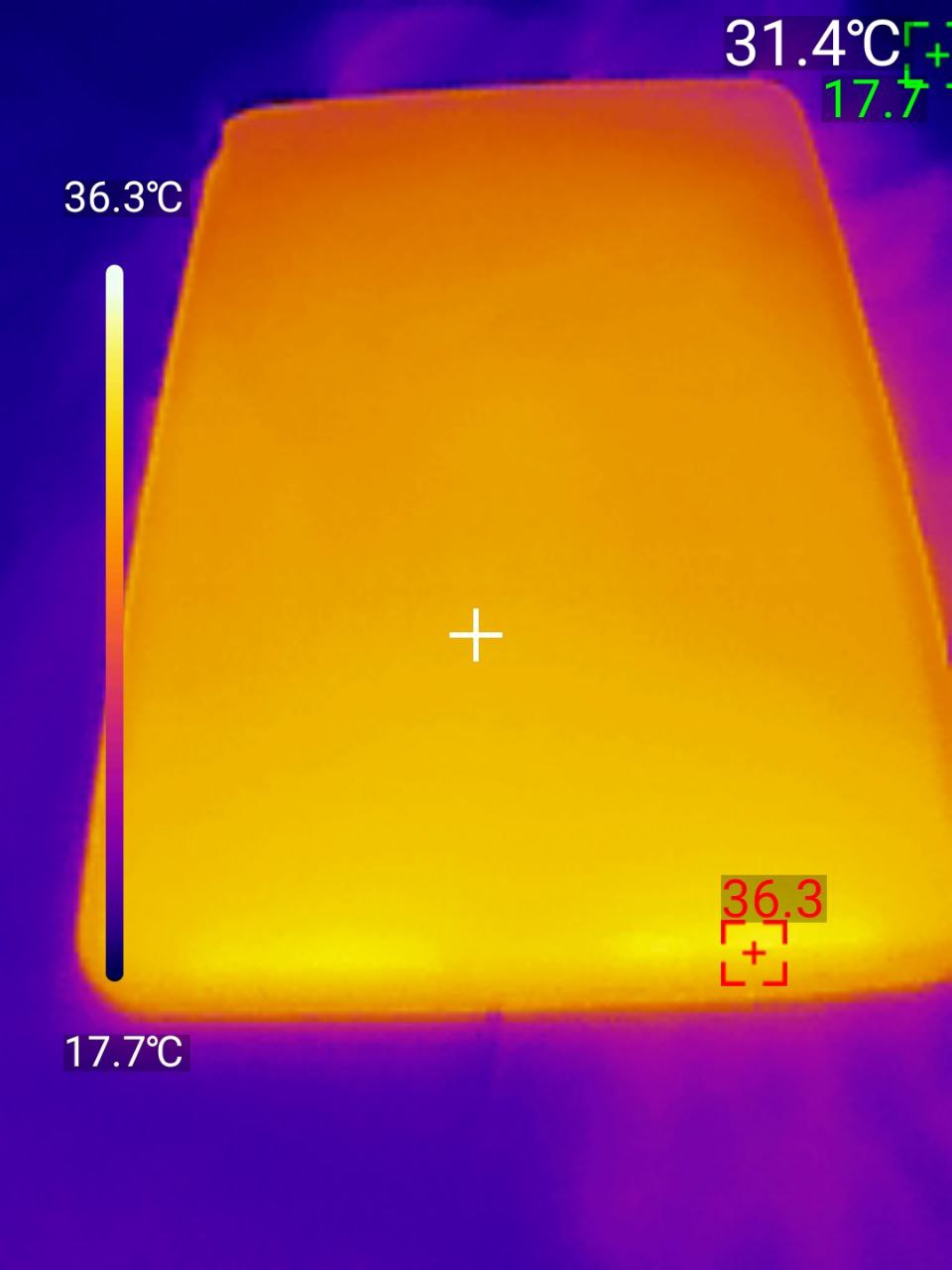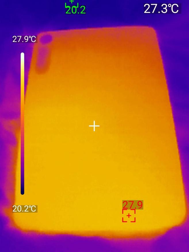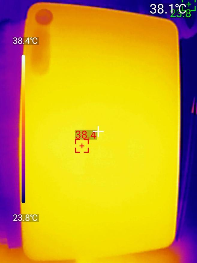 CPU Throttling Test планшет показал устойчивость 76,3% — процессор держит производительность даже при длительной нагрузке. За 15-минутный стресс-тест производительность колебалась между 80-90%, что очень достойно. И вот что важно: даже при такой нагрузке температура задней крышки не превысила 38,4°C — это очень умеренный показатель.