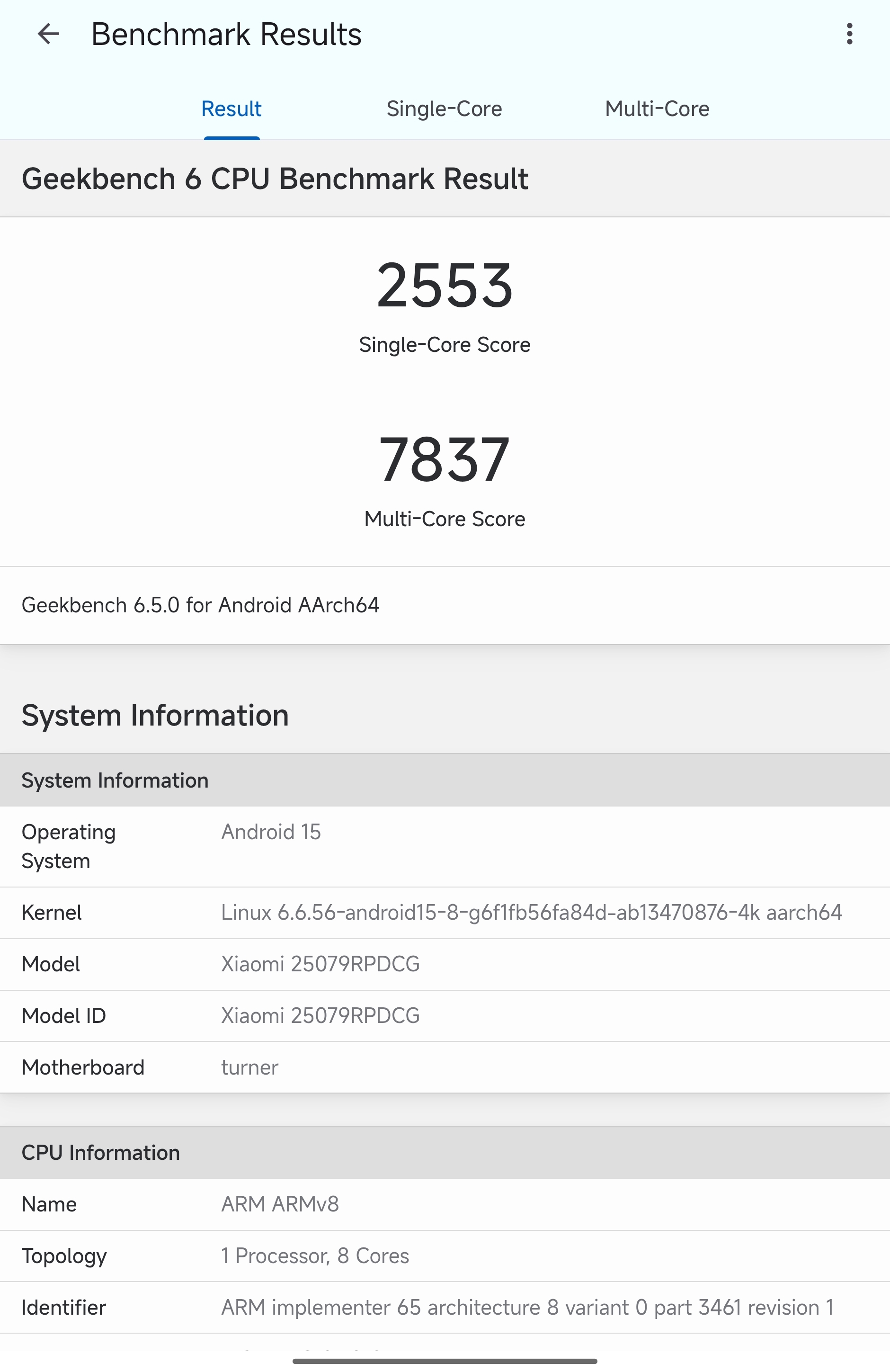 В Geekbench 6 получил 2553 балла в однопоточном тесте и 7837 в многопоточном. Опять же, на пустом планшете было бы немного выше, но и эти цифры говорят сами за себя — это производительность топового уровня. Для сравнения: Pad Mini обходит флагманы Samsung вроде Galaxy S24 Ultra (2136 в single-core, 6675 в multi-core).