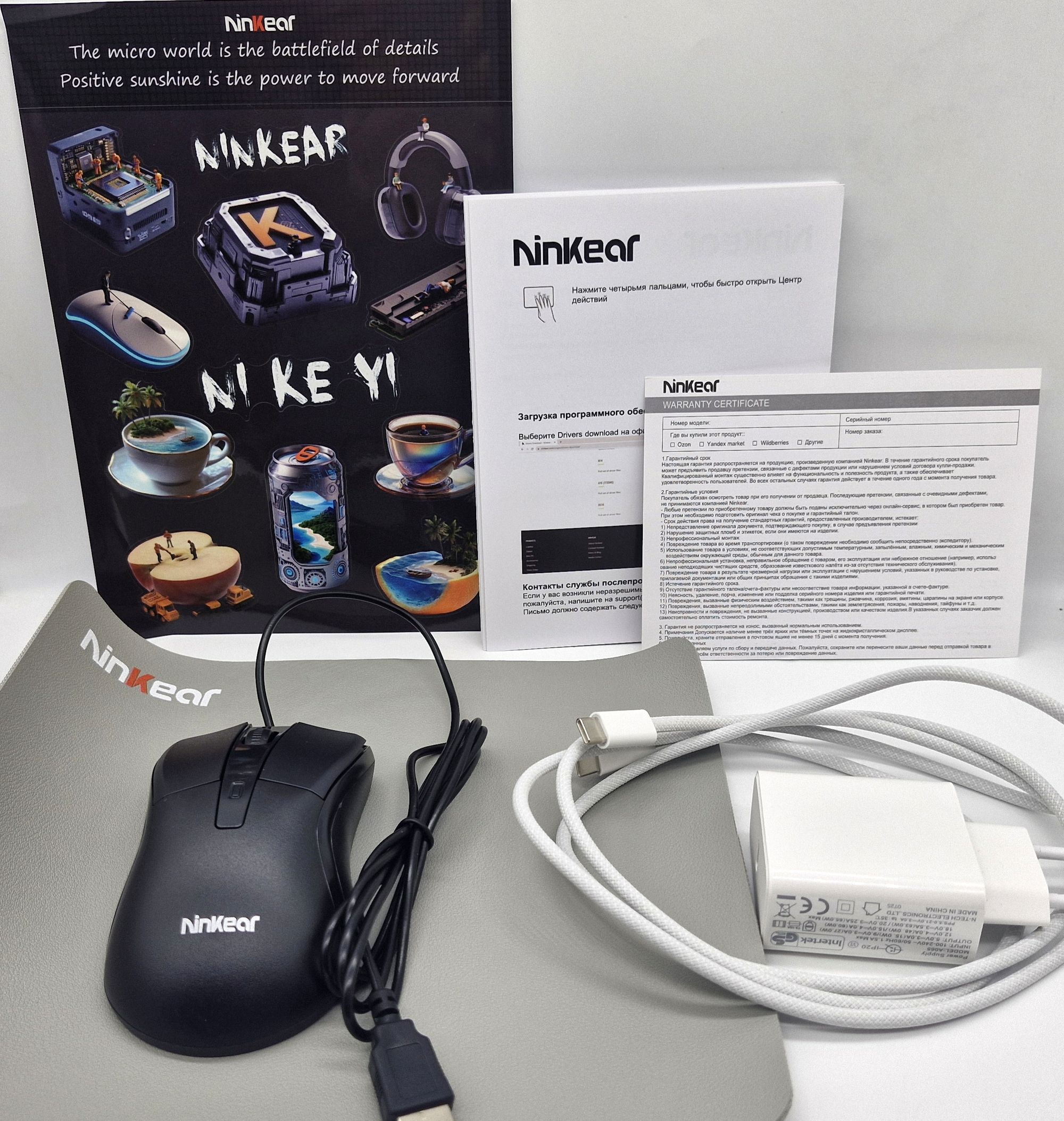 Ninkear изменил упаковку для этой модели, теперь там коробка с полиграфией, выглядит более «брендово». Внутри раскладка в пластиковой вставке, как в смартфонах. В отдельной коробке дополнительные «подарочные аксессуары». Для этой модели есть только один вариант конфигурации (7535HS 16 ГБ + 1 ТБ).