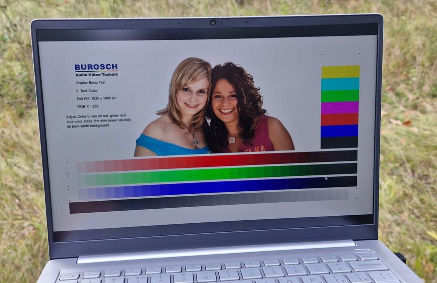 Матовое покрытие, видимая область 302х188 мм. Не сенсорный! Запас по яркости для помещения достаточен, на солнце уже не так весело, нужно искать тенистое место. Цветопередача тоже на хорошем уровне, цвета кажутся близкими к реальности.