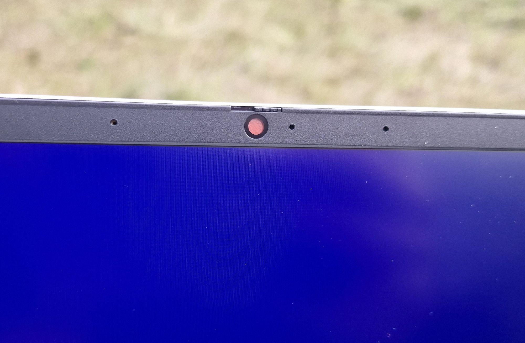 Для камеры не забыли механическую шторку (причем яркую, сразу понятно что камера закрыта). Рядом отверстия микрофонов.