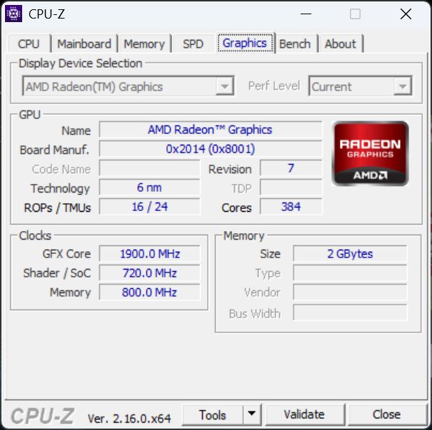 | Графическая система | Radeon 660M 1900 МГц 2 ГБ |