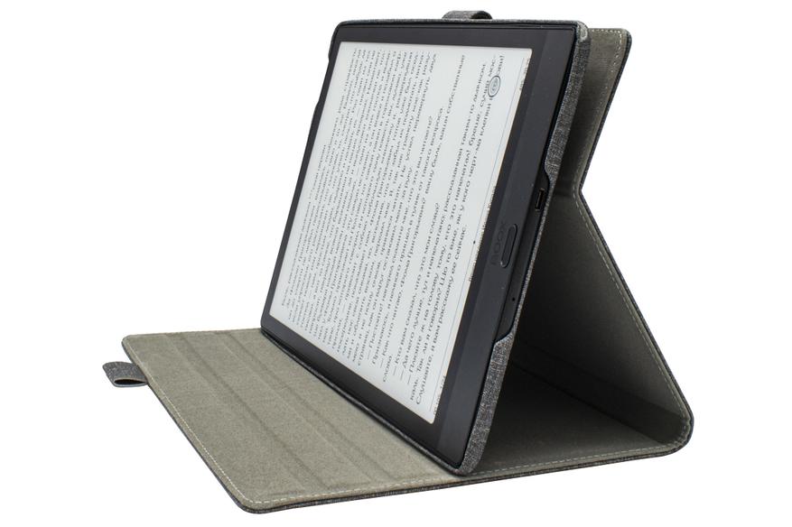 Планшет выполнен в черном корпусе габаритами 249.5x177.8x7.1 мм и весом 378 г, а также оснащен программируемой физической клавишей. В комплектацию входит «умный» чехол. Сенсорный экран диагональю 10.3″ и разрешением 1872x1404 выполнен по технологии E Ink Mobius Carta на пластиковой основе. Он способен отображать до 16 оттенков серого. Реализована двухцветная немерцающая подсветка Moon Light 2. Защищает дисплей фирменное стекло Onyx Glass.