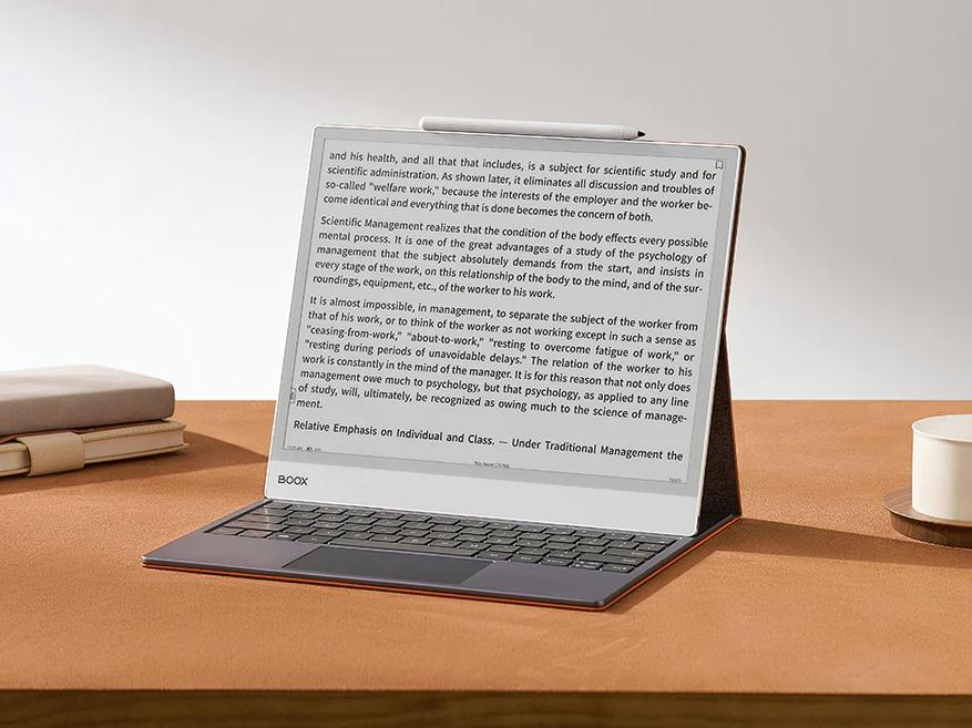 Устройство работает на базе неназванного восьмиядерного чипсета с тактовой частотой 2,8 ГГц. Количество памяти составляет 6/128 ГБ, слот для карты MicroSD отсутствует. Из прочего модель предлагает двухдиапазонный Wi-Fi, Bluetooth 5.0, микрофон, стереодинамики и систему Android 13. Отдельно производитель указывает небольшую толщину корпуса, которая составляет всего 4,6 мм. В комплекте к ридеру лежит стилус BOOX Pen Plus, а в качестве дополнительных аксессуаров предлагаются магнитный чехол и кейс с клавиатурой, превращающий книжку в подобие ноутбука.