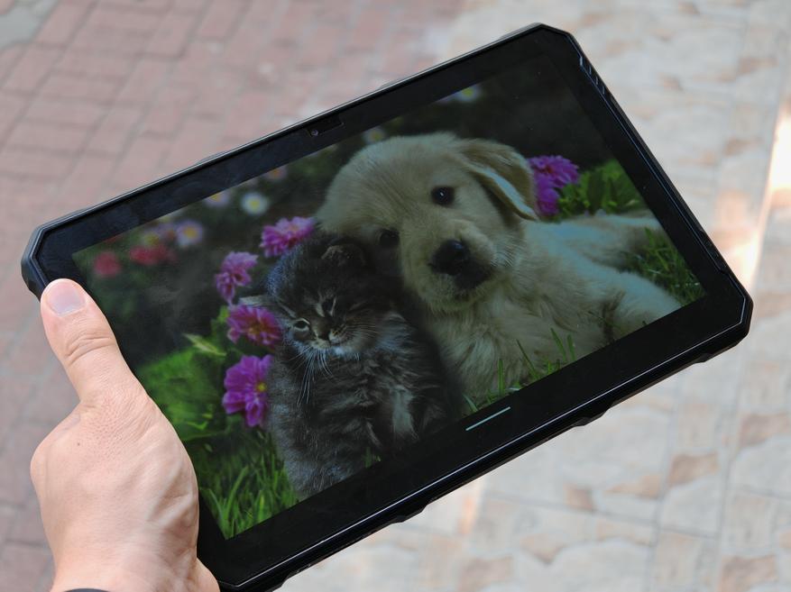 На передней панели Ulefone Armor Pad 3 Pro находится большой 10.36″ дисплей с разрешением 2000*1200 точек и максимальной яркостью 500 нит. По периметру от дисплея расположены внушительные рамки шириной почти в 1 см. По центру сверху установлен модуль фронтальной камеры.