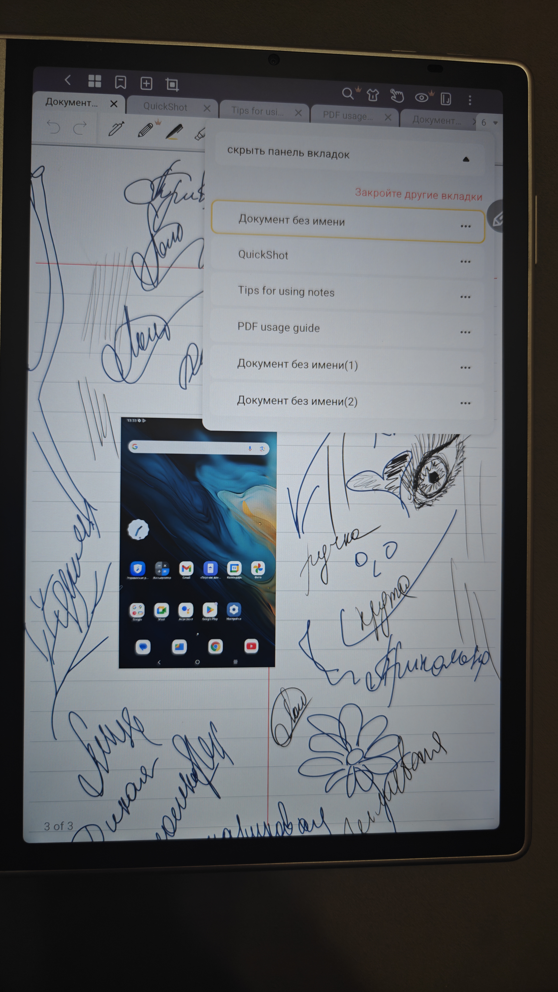 Встроенное ПО создания заметок позволит моментально от руки накидать план задач, мысли, презентацию или зарисовать какие-то наблюдения. Все это можно использовать как просто записную книжку, но средства андроид позволяют нам вставлять абсолютно любые картинки в заметки и творить, исходя их них.
