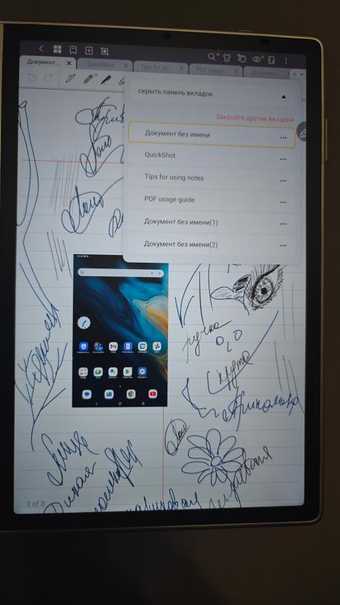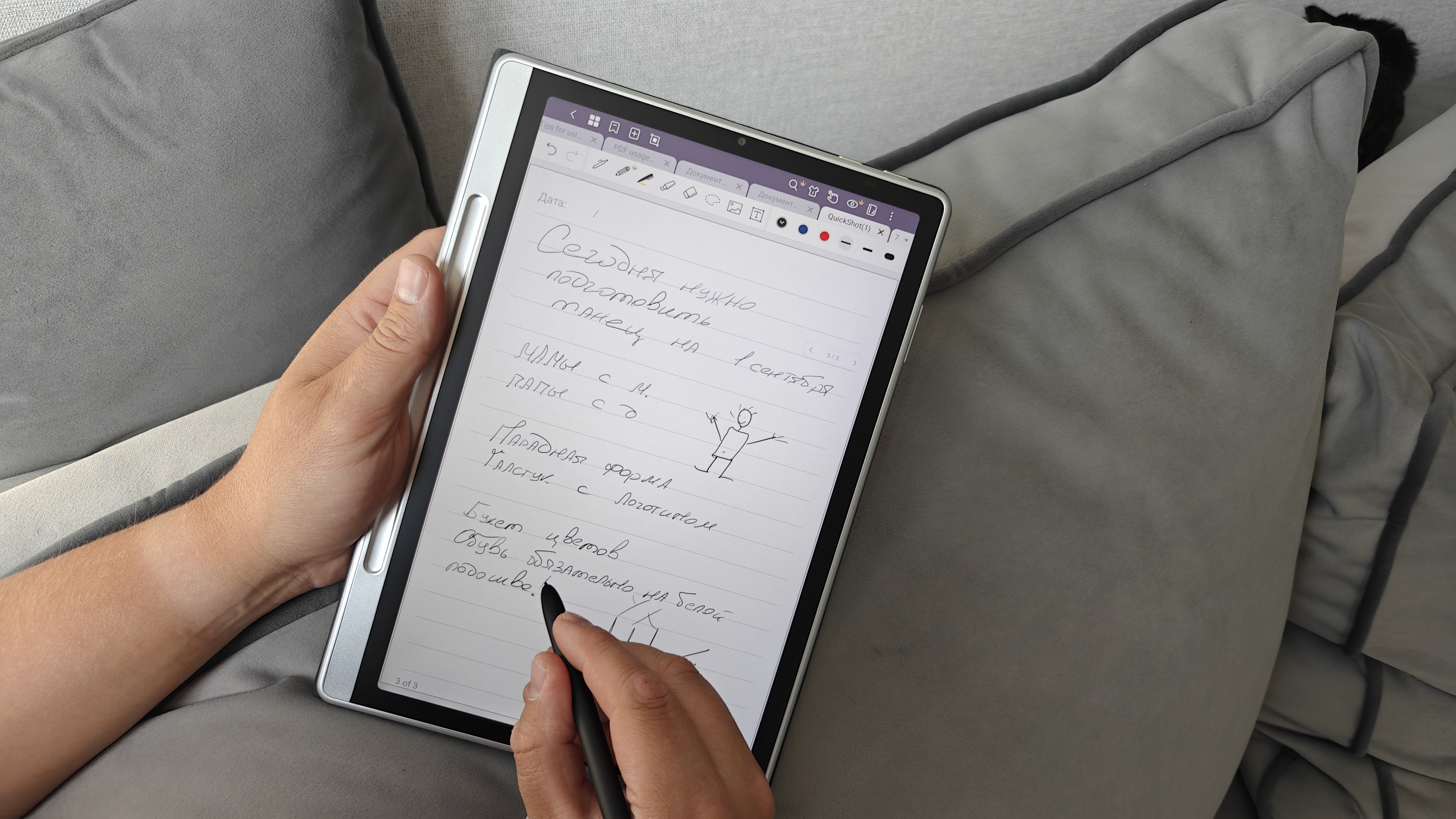 Такой инструмент всегда можно носить с собой и сделать записи от руки. Я, например, оценил это при обсуждениях на родительских собраниях. Просто записал от руки, как на обычном бумажном блокноте и можно в секунды поделиться с родными или другими родителями.