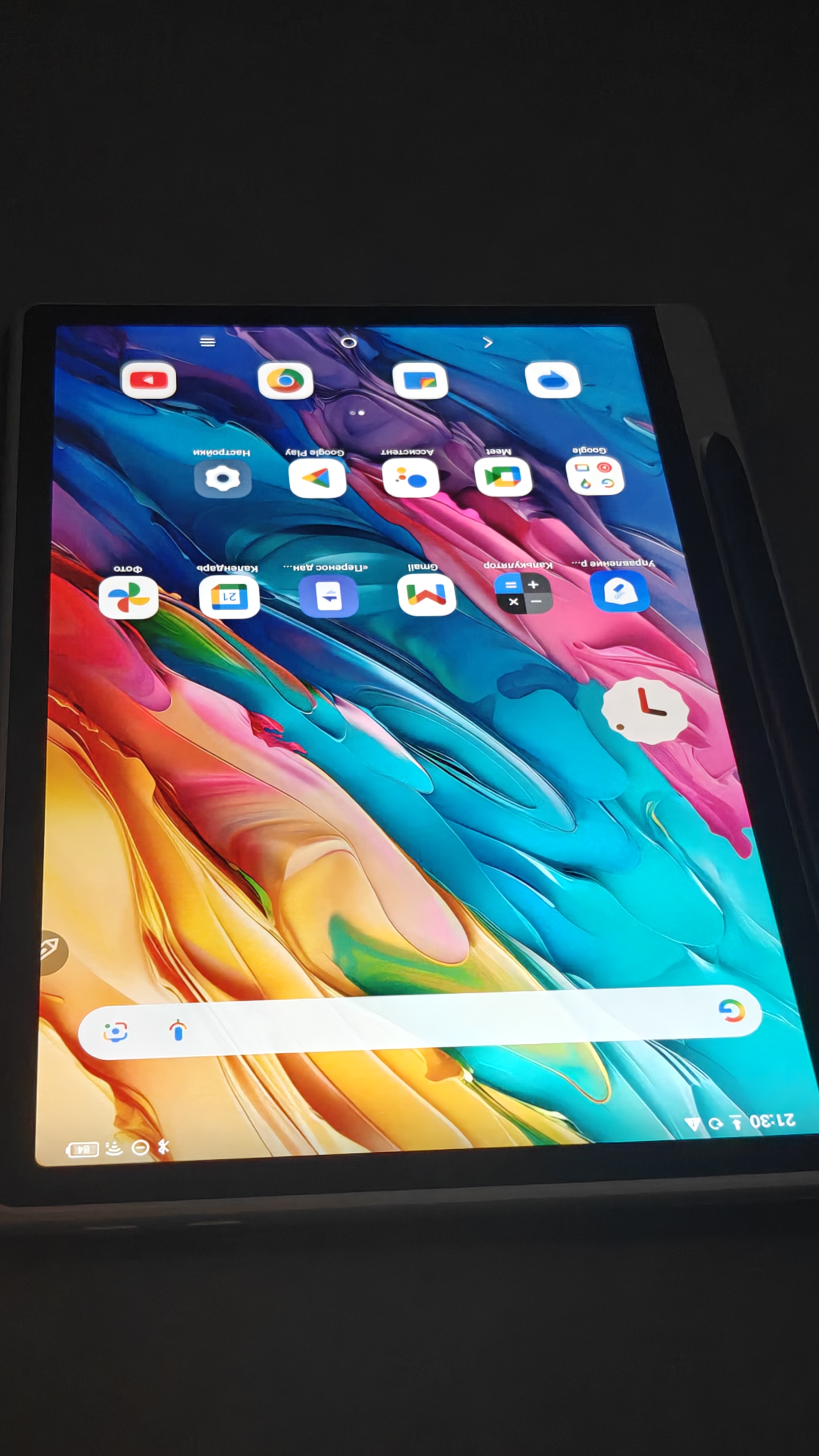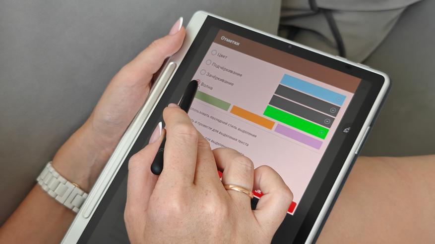 В полной темноте цвета вообще исключительно передаются, да и дисплей с заявленным охватом гаммы 95% по sRGB. У него есть сертификация TÜV SÜD Low Blue Light чтобы можно было долго пользоваться в темноте, а также сертификация TÜV SÜD Paper-like Display для ощущения рисования или чтения на бумаге, а не дисплея планшета.