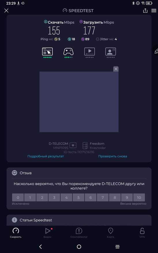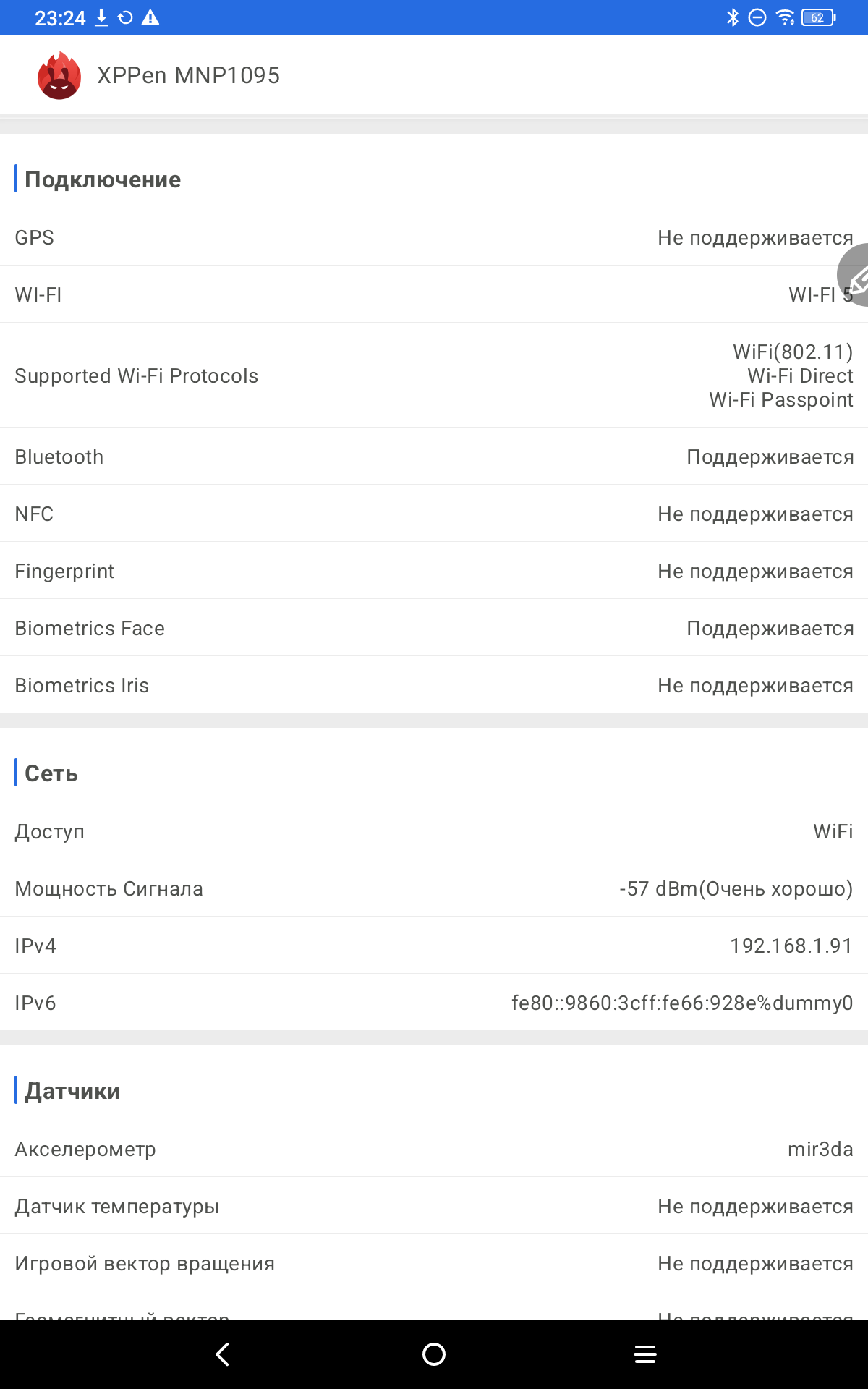 У планшета потрясный прием Wi-Fi, так что можно работать в любом кафе или помещении, где прием сети не самый уверенный. Wi-Fi сети 5 поколения дают скорости около 200 Мбит/с. А скорости чипов памяти не самые сильные. На запись около 200 МБ/с, а на чтение около 300МБ/с.