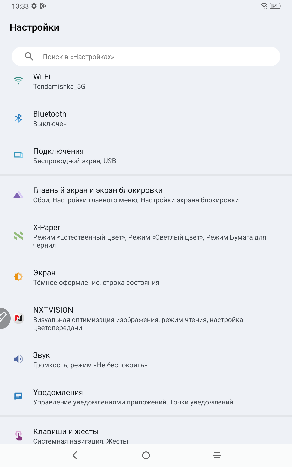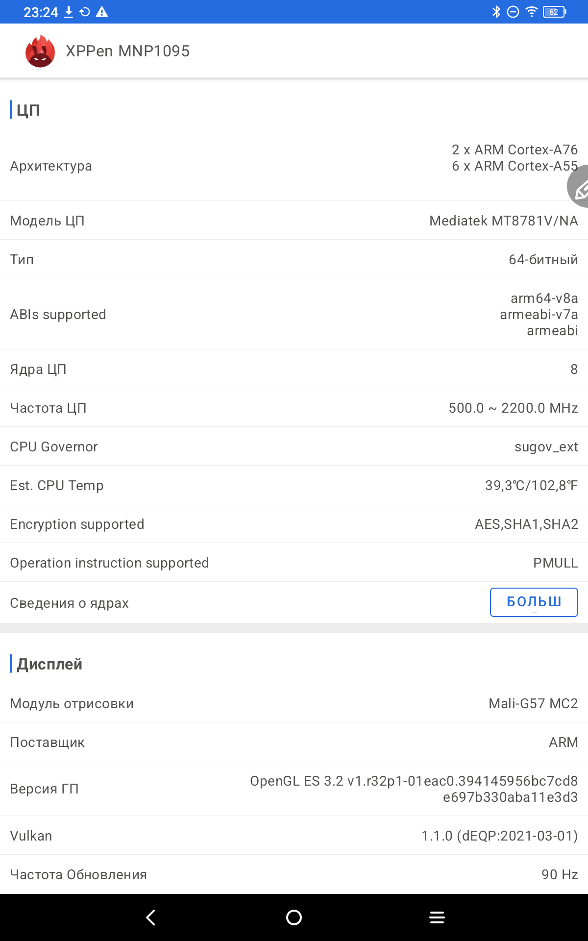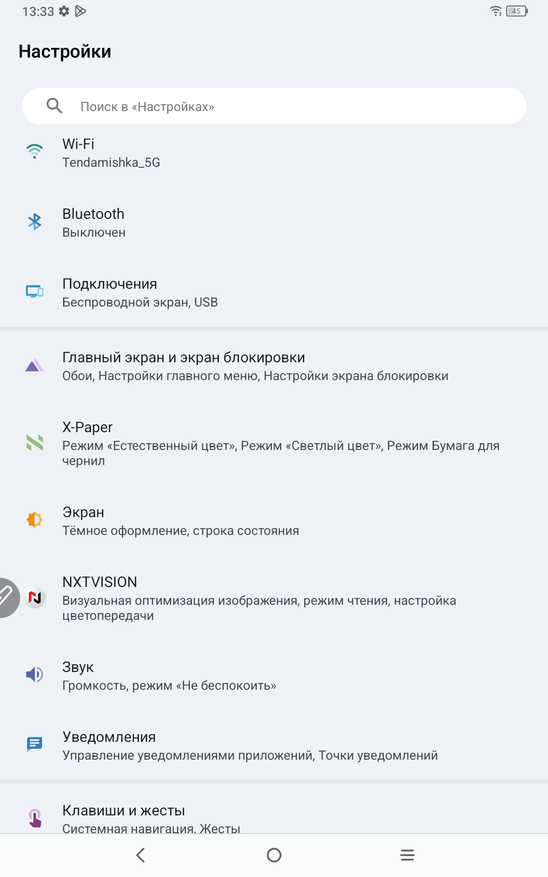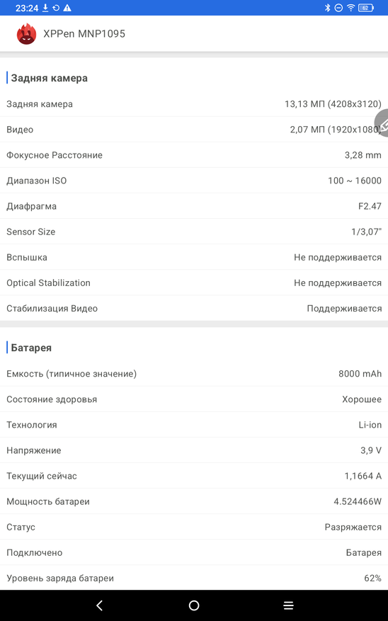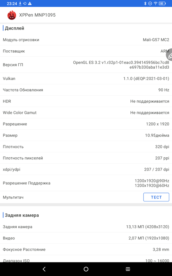 Теперь рассмотрим сам планшет именно как андроид устройство. Работает планшет на полноценном Android 14. Тут привычные элементы управления и корректно работающие жесты. В настройках устройства есть как привычные пункты, так и разделы именно производителя XP-PEN. Есть тут настройка особых режимов отображения, чтобы вы могли подобрать режим для себя. Можно читать электронные книги в черно-белом варианте, работать и делать записи в светлом, и играть и смотреть фильмы в насыщенных цветах. На устройстве занято 25 ГБ памяти из 128 ГБ. Еще есть особая умная кнопка, которая вызывает специально назначенные инструменты. В остальном тут привычное использование андроид планшета.