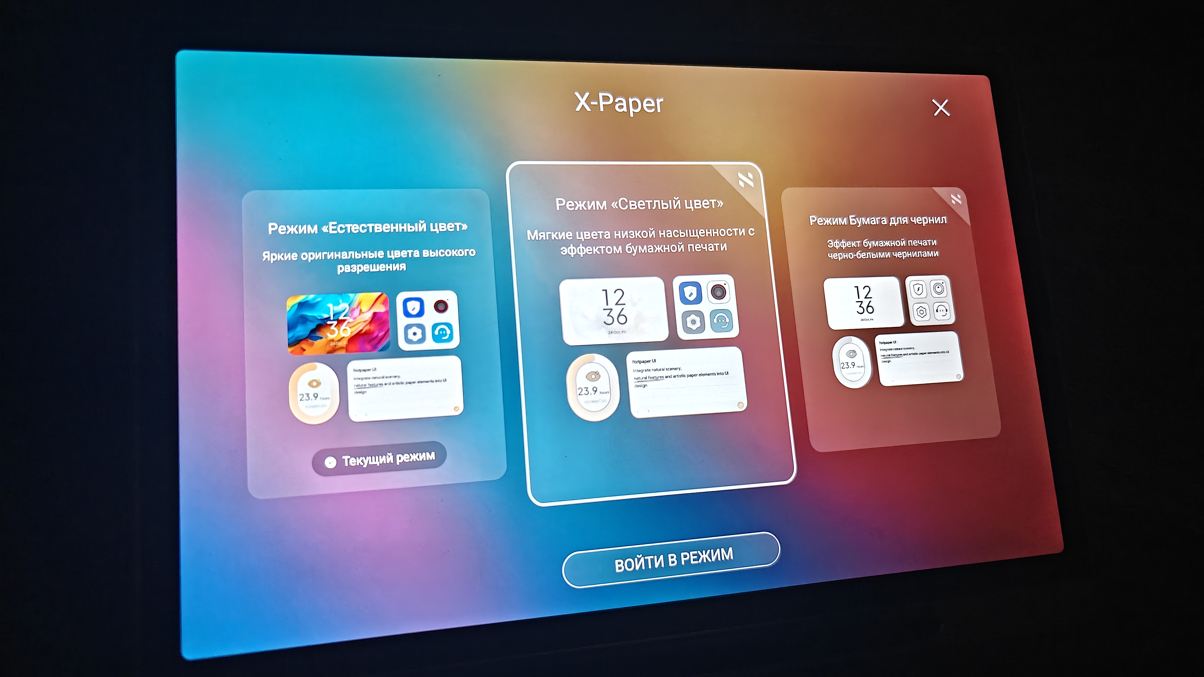 • Режим светлых цветов (мягкие цвета низкой насыщенности с эффектом бумажной печати);