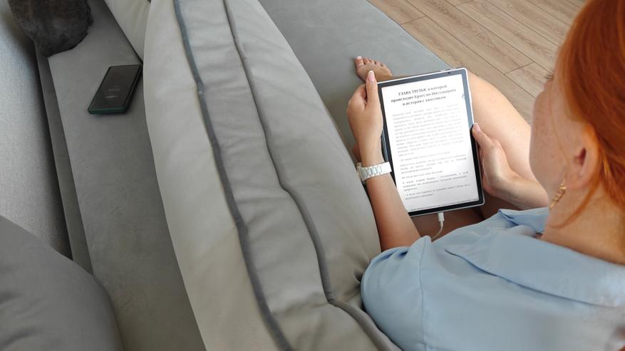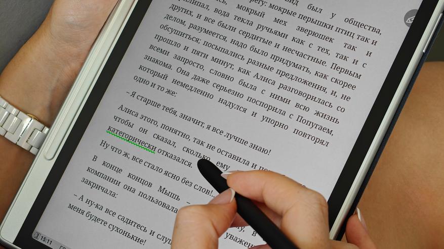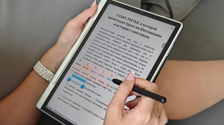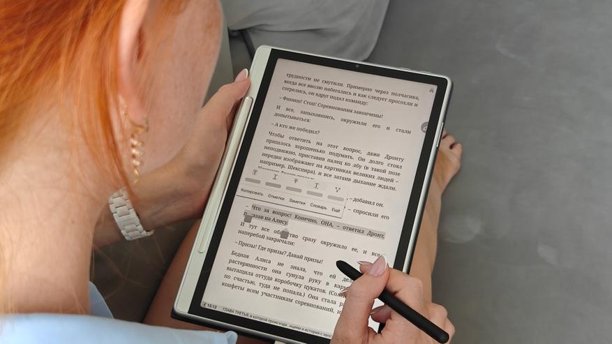 Мало того, что мы можем выбирать режимы для чтения и регулировать подсветку. Для цветных принципиальных схем, журналов, и иллюстрированных книг можно использовать насыщенный режим, а в режиме чтения художественной литературы удобнее перейти в режим имитации бумаги. Также мы можем делать заметки, выделять особо значимые участки текста, оставлять комментарии прямо ручкой на листе и обращаться к словарям и интернету, если нам что-то нужно узнать дополнительно.