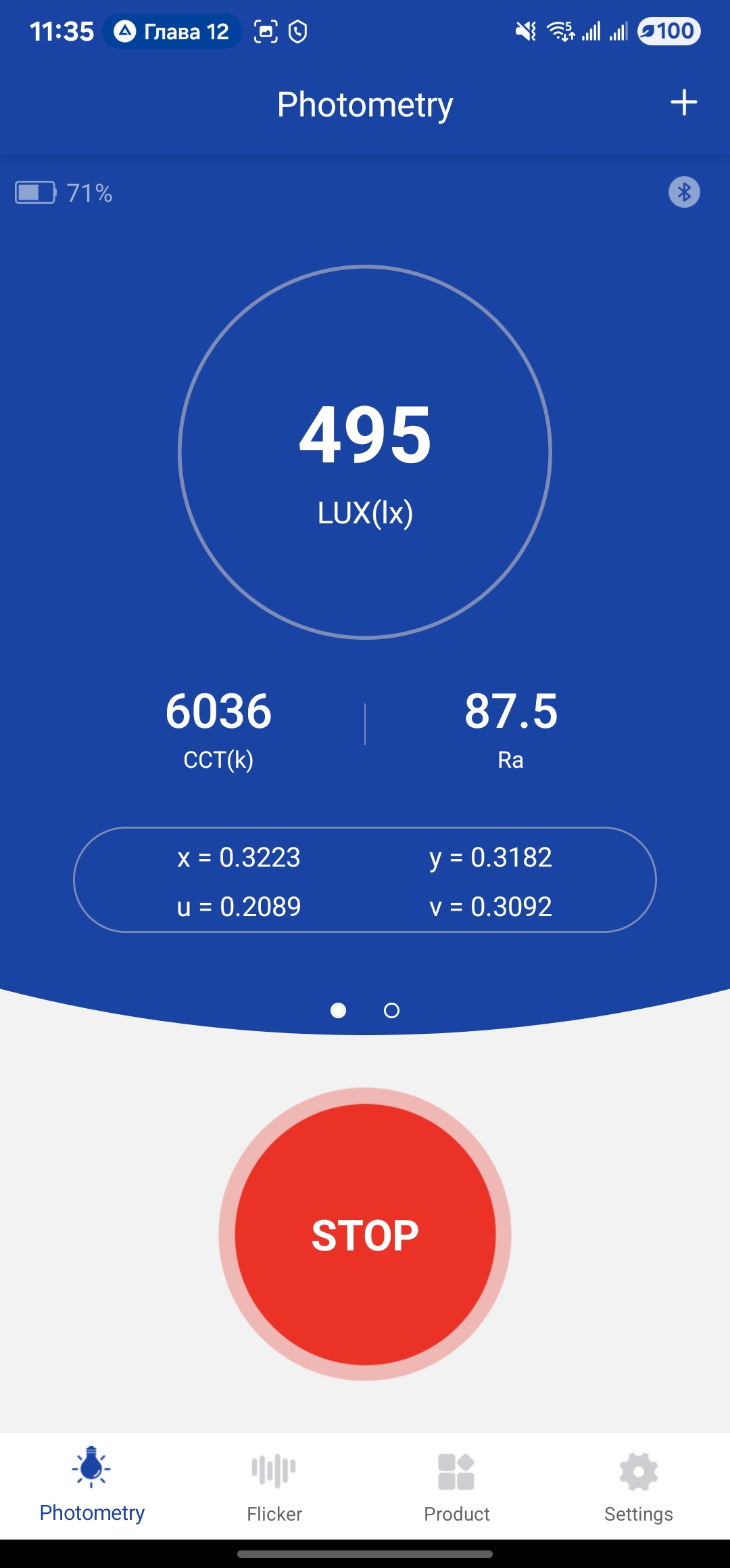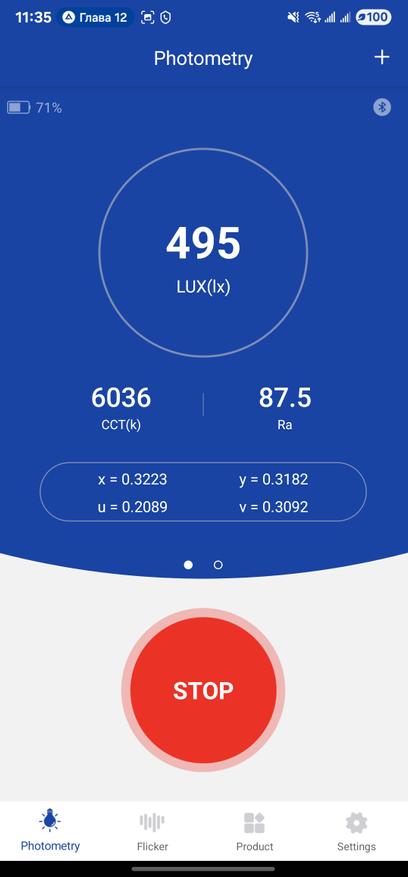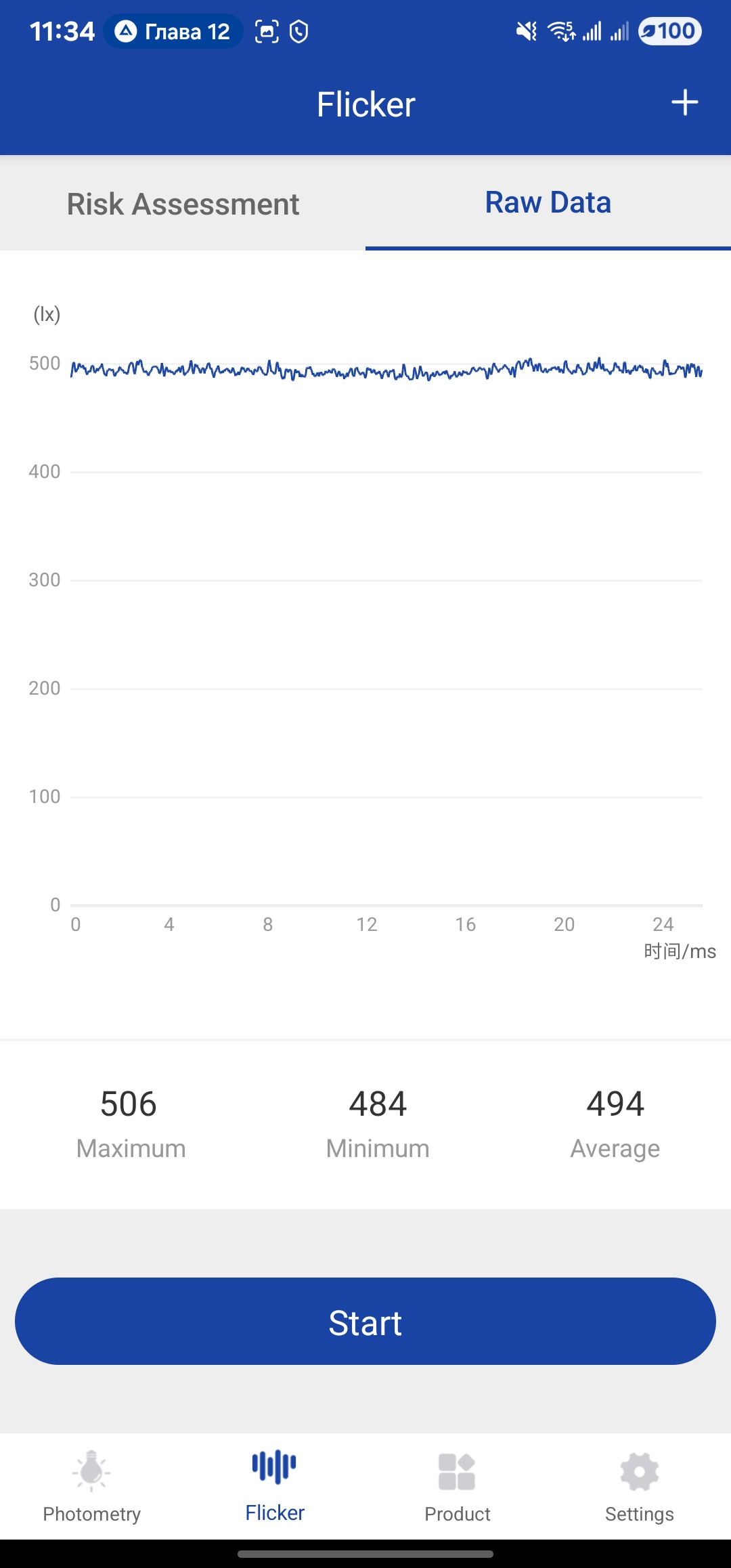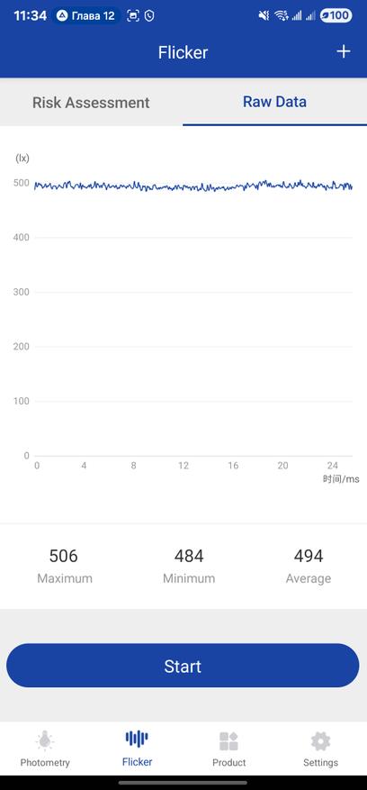 Замер с люксметром и пульсометром показывает приличный результат — это высокая яркость (около 500 нит) и минимальное значение мерцания подсветки.