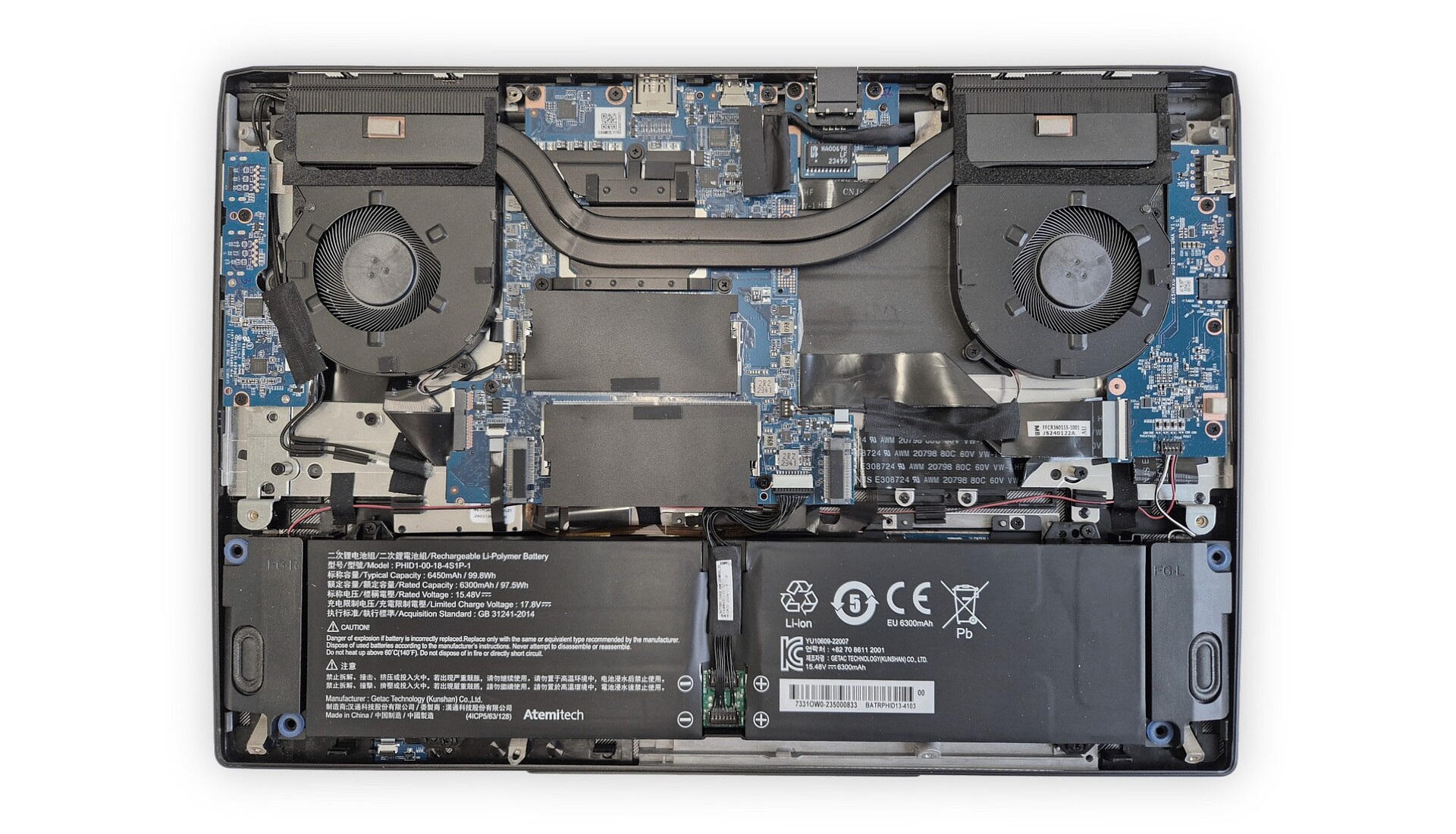 Энергоснабжение обеспечивается аккумуляторной батареей ёмкостью 99 ватт-часов, закреплённой винтами для удобства обслуживания. По заявлению разработчиков, полного заряда хватает приблизительно на 11 часов просмотра веб-страниц. Поддерживается быстрая зарядка мощностью 150 ватт через разъём USB-C.