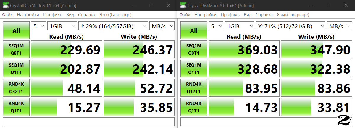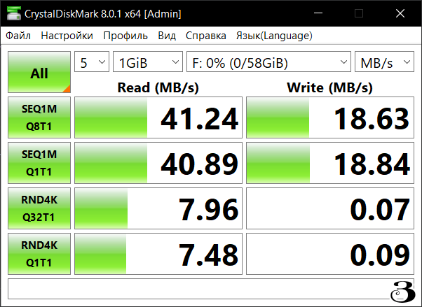 Скриншот 1: Тест скорости порта USB 3.0. Скриншот 2: тест скорости одновременно двух портов USB 3.0. Скриншот 3: тест скорости порта USB 2.0. Скриншот 4: тест скорости слота TF.