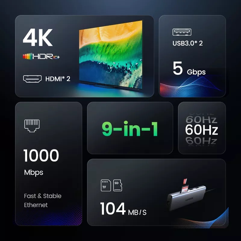 Обзор Type-C-адаптера Ugreen 9 в 1 с двумя HDMI-портами