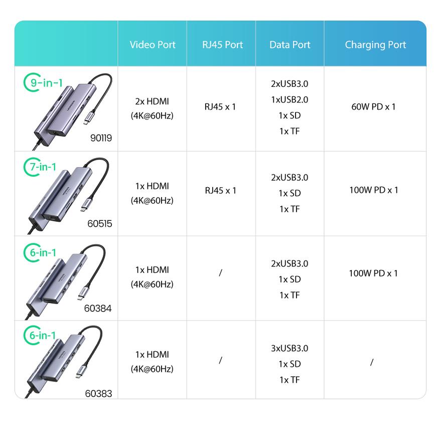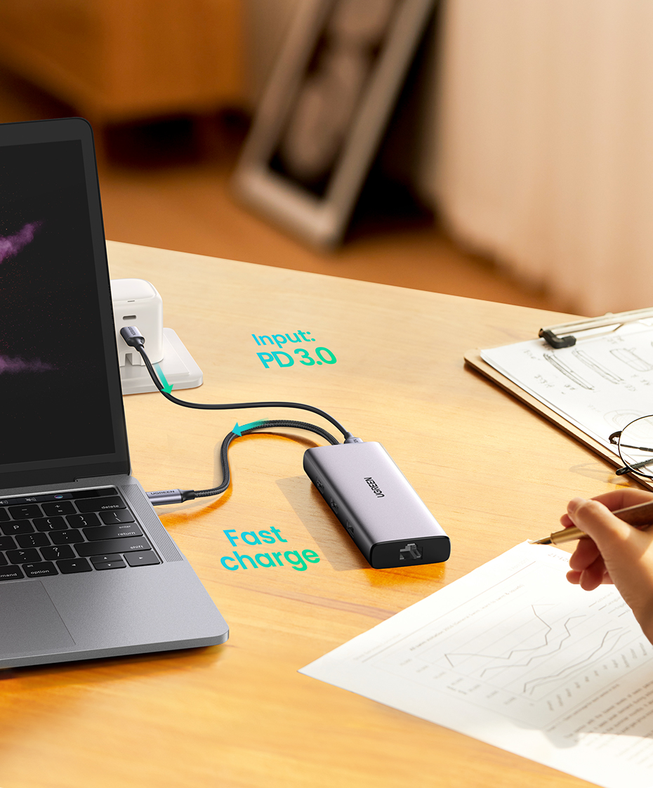 Героем сегодняшнего обзора станет type-c адаптер от Ugreen, оснащенный двумя HDMI портами, тремя USB, SD и TF слотами, разъемом RJ45, а также зарядным портом Power Delivery.