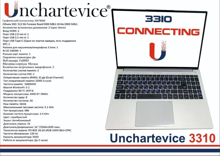 Unchartevice анонсирует новый ноутбук с модельным номером 3310 на процессоре Ryzen 7 7840U