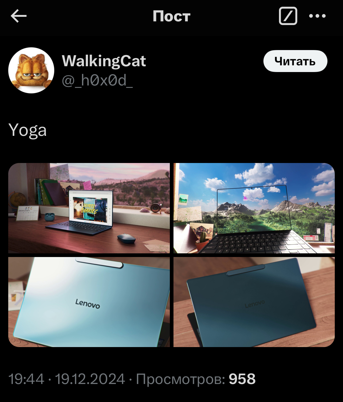 Судя по информации, новый Lenovo YOGA будет оснащен процессорами Intel Lunar Lake, в частности, серией Core Ultra 200V. Источник также сообщает, что Lenovo YOGA скорее всего будет официально представлен на выставке CES 2025 в следующем году.