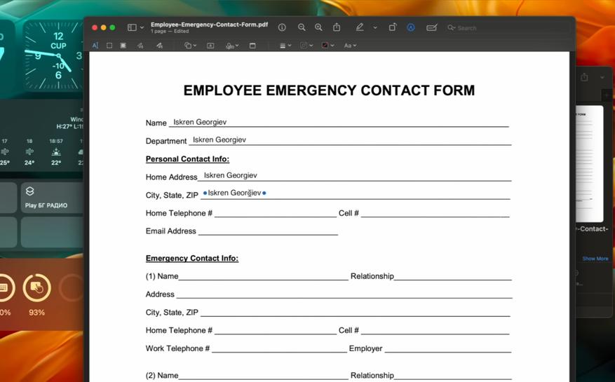 Добавление панели инструментов в приложение Preview значительно упрощает процесс заполнения PDF-форм. Данная панель выделяет все поля в файле, подлежащие заполнению, что исключает возможность пропустить какое-либо пустое место.