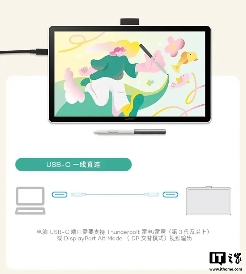 В комплект входит стилус Wacom One, который работает без батареи и зарядки. Перо весит 9,9 грамма и поддерживает 4096 уровней чувствительности к нажатию. Устройство также совместимо со стилусами сторонних производителей, включая продукцию брендов Shide Lou, Lingmei и Baile.