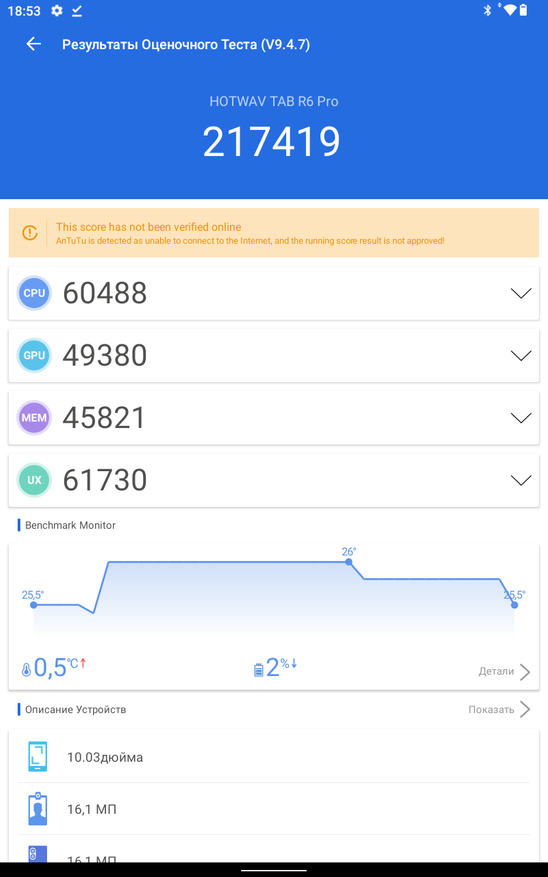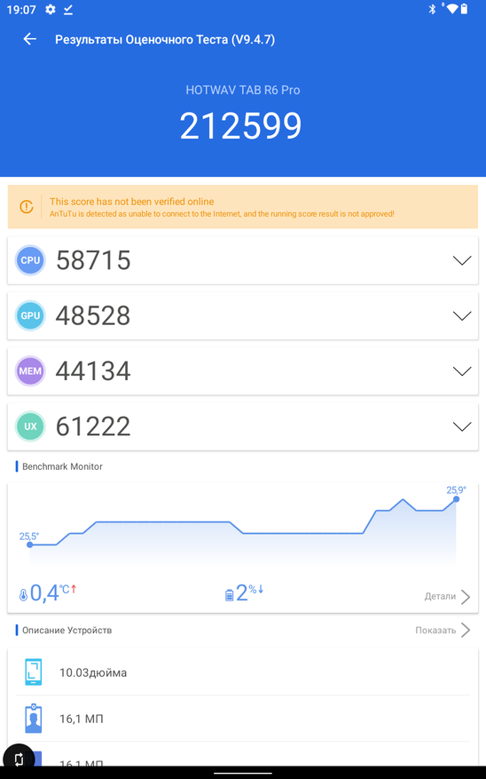 Дальше будут проведены несколько тестов различными программами для определения скорости работы. Планшет прекрасно справился с поставленными задачами.