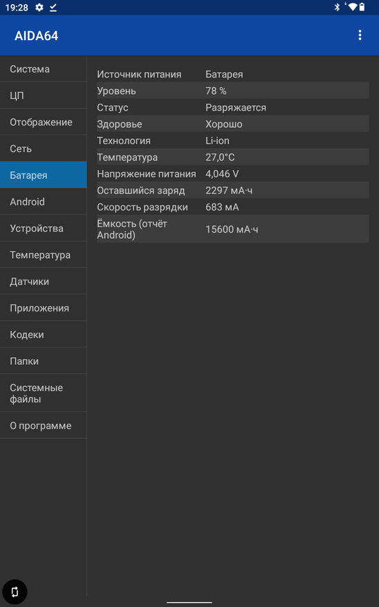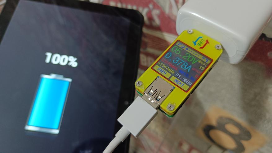 Планшет поддерживает зарядку до 3А. Точное время заряда не стал рассматривать, но в аккумулятор влилось почти 13000mAh. При использовании планшета в роли переносного аккумулятора, получилось выжать 8561 mAh. Результат довольно хороший. В режиме ожидания при выключенном экране саморазряд не превышает 5% в день.