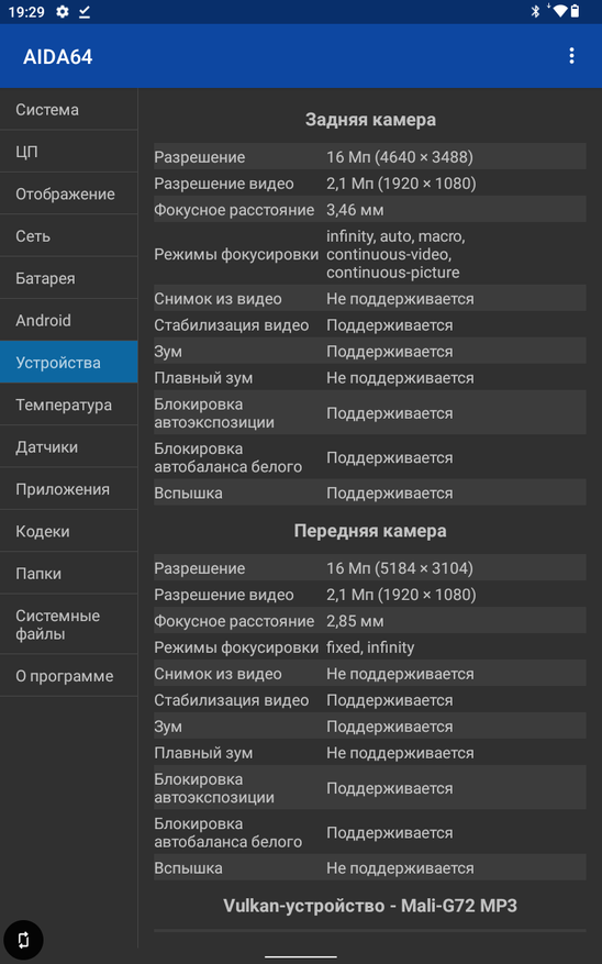 В планшете присутствуют 2 камеры. Обе они на 16 Мп. Качество конечно посредственное, но в случае необходимости можно сделать пару кадров.