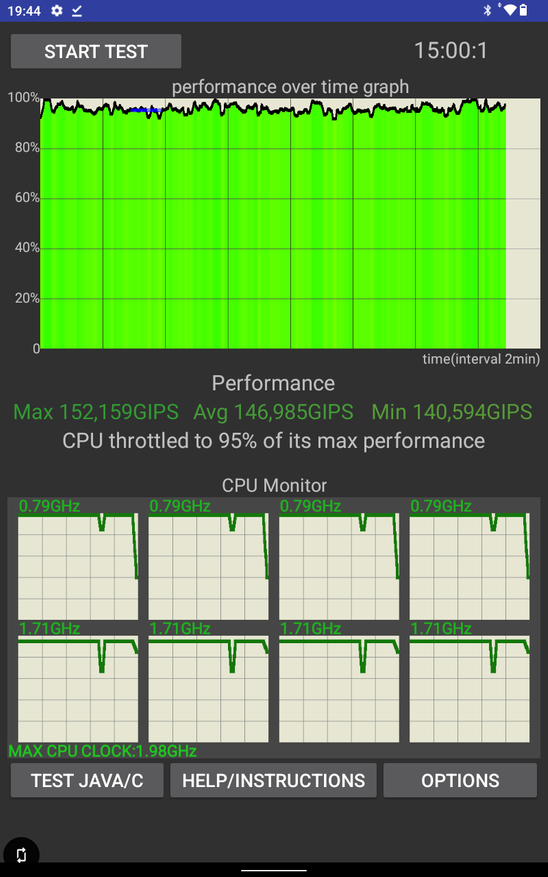 Перед проведением синтетических тестов, решил прогнать пару раз Antutu. Результат вполне предсказуемый 215-217к "попугаев". Собственно такие результаты показывает связка Helio P60 и 8 Гб оперативной памяти. Опять же для своего основного предназначения, планшета хватает. Справляется с играми, программами и не приходится постоянно их закрывать.
