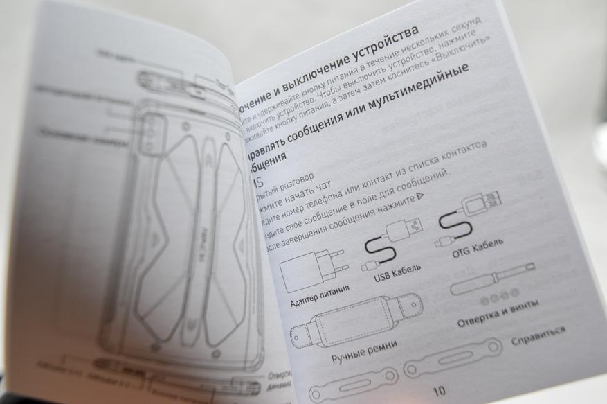 Инструкция в форме небольшой книжки. Включает в себя, в том числе и русский язык. Перевод вполне читаемый, хотя видно, что проведен автоматическим переводом. В комплекте предусмотрен провод USB Type-C Type-C и OTG USB Type-C. Длина первого более 1 метра. Второй совсем коротыш, не более 25 см. Зарядное устройство поддерживает быстрые протоколы и выходную мощность до 20 Вт.