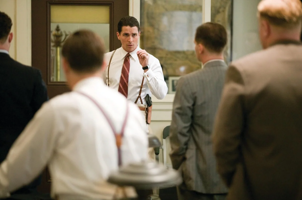 Кристиан Бэйл воплощает Первиса как человека, разрываемого между долгом и сомнением, между законом и человечностью. Его противостояние с Джонни Деппом — это не только охота, но и философский спор о власти, морали и цене свободы.