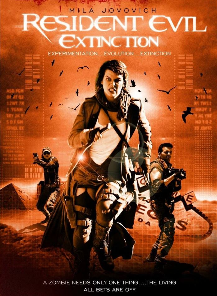 Третий фильм серии переносит Миллу Йовович в постапокалиптическую пустыню, где она сражается с корпорацией «Амбрелла» и ордами зомби. Лента сочетает безумный экшен, боевые искусства и стимпанк-эстетику, но критики называют её шаблонной. Фильм стал культовым среди фанатов серии игр.