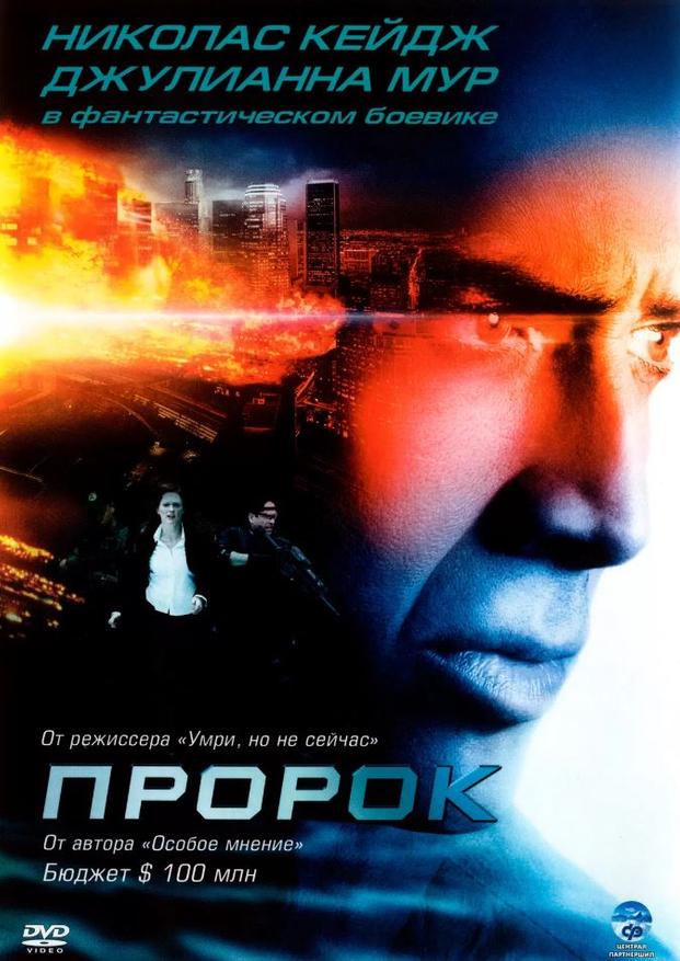 Николас Кейдж в роли Криса Джонсона, человека, способного видеть будущее на 2 минуты вперёд, пытается предотвратить ядерную катастрофу. Фильм смешивает экшен, детектив и элементы нуара, но страдает от шаблонного сценария и нераскрытого потенциала идеи. Динамичные сцены вроде погони в казино впечатляют, однако финал оставляет ощущение незавершённости. Лента стала коммерчески успешной, но критики назвали её «упущенной возможностью».
