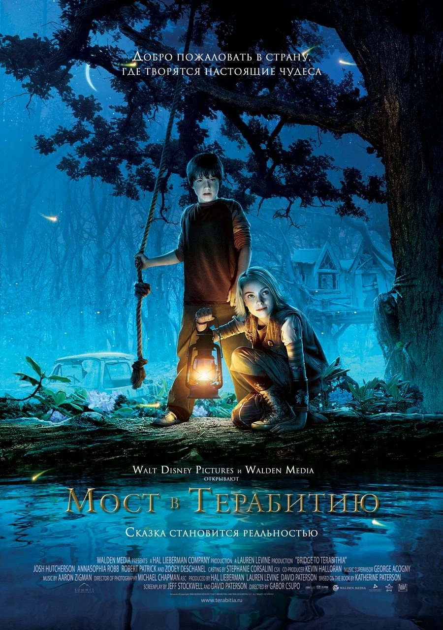 Эта трогательная история рассказывает о дружбе двух детей, изгоев в школе, которые вместе создают волшебный мир Терабитию в близлежащем лесу.