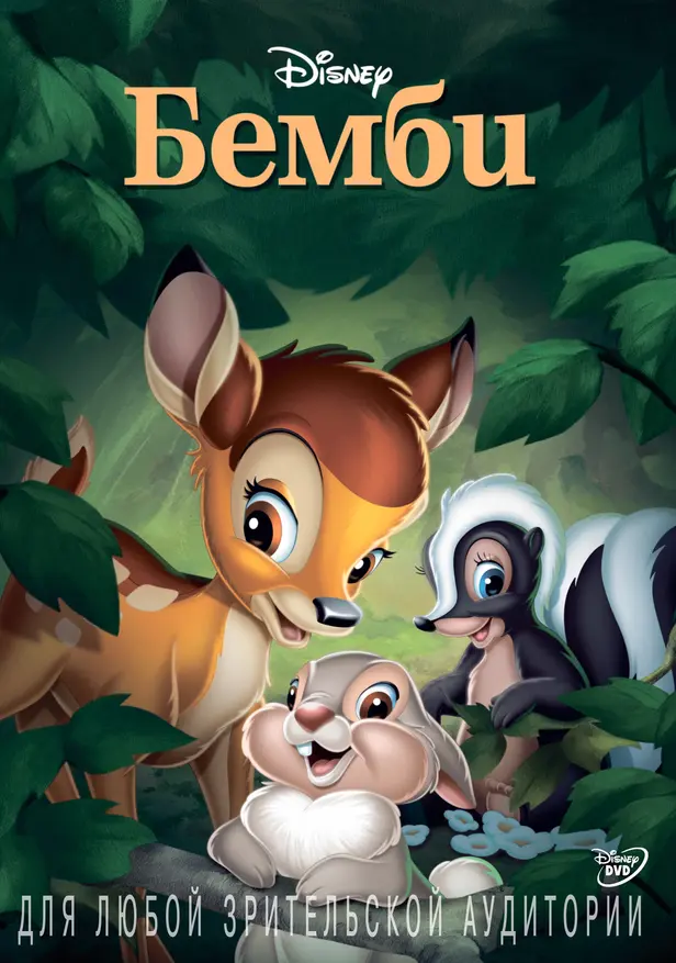 Это классический анимационный мультфильм Диснея, основанный на романе Феликса Зальтена 1923 года «Бэмби, жизнь в лесу», рассказывает о оленёнке и его друзьях — молодом кролике и скунсе — которые исследуют лес. Главное говорящее животное в этом мультфильме, олененок Бэмби, озвучил его Донни Дунаган, который ушел из озвучки после фильма и заработал Бронзовую звезду и три Пурпурных сердца во время службы в Корпусе морской пехоты США во Вьетнаме. Но главная интрига с Бэмби — это печальный конец, который, как считается, пробудил интерес Пола Маккартни к защите прав животных.