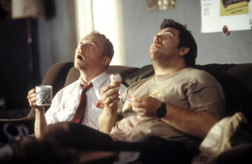 Эдгар Райт известен своим вниманием к деталям. В титрах он показывает, как общество приспосабливается к жизни с зомби. Мертвецов используют в телеиграх, на кассах супермаркетов и даже в реалити-шоу. Это сатирический взгляд на поп-культуру, который отлично завершает зомби-пародию.