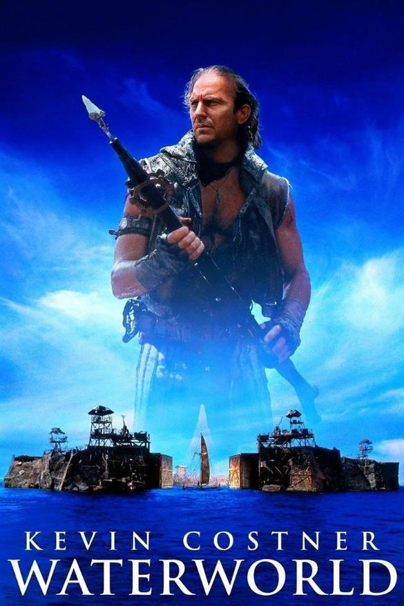 Постапокалиптический мир, где растаявшие ледники затопили Землю, а люди выживают на плавучих городах. Кевин Костнер в роли мутанта-ихтиандра ищет мифическую Сухую землю, спасая сироту с татуировкой-картой. Фильм провалился в прокате, но стал культовым благодаря масштабным сценам на воде: битвам с участием тримарана главного героя, взрывам и погоням на гидроциклах. Это история о вере в лучшее, даже когда мир превратился в бесконечный океан.