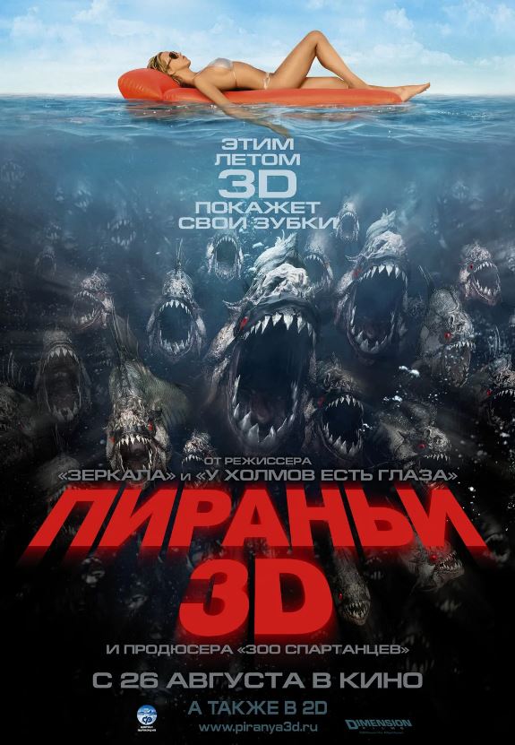 В озере происходит динамичный праздник, который атакуют доисторические рыбы. Дина Мейер в роли Паулы — дайвер-сейсмолог. Её образ остаётся в памяти благодаря сцене: она спускается в подводную расщелину, находит икру пираний и становится свидетелем того, как стая этих рыб буквально за несколько мгновений обгладывает её до костей. Режиссёр Александр Ажа создал сцену, напоминающую балет ужаса: медленный танец фонариков, внезапная атака, багровая от крови вода. Фильм собрал $83 млн, что является успехом для категории Б. Дине Мейер хватило всего 10 минут, чтобы показать профессионалку, погибшую из-за человеческого любопытства.