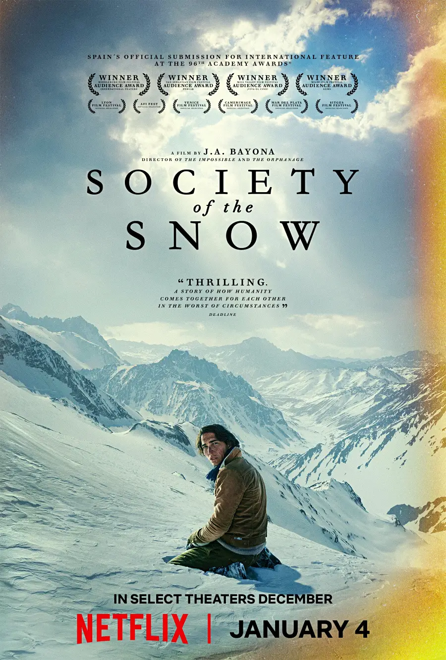 Фильм «Общество снега» испанского режиссёра Хуана Антонио Байоны рассказывает о реальных событиях 1972 года, когда самолёт с уругвайскими регбистами разбился в Андах. Выжившие оказались в экстремальных условиях, борясь с холодом, голодом и безысходностью.